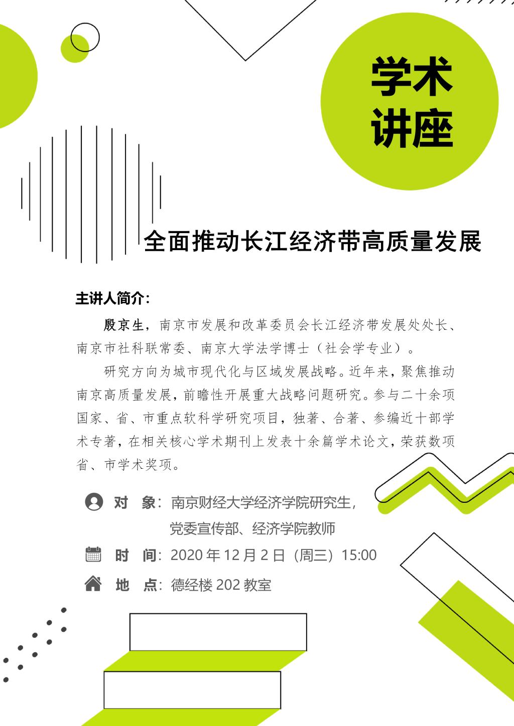学术讲座预告:全面推动长江经济带高质量发展