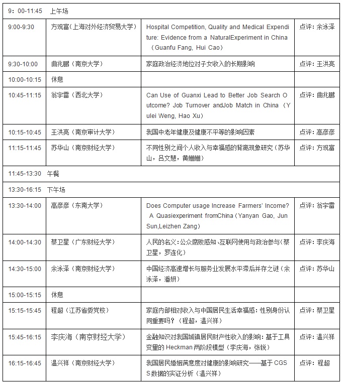 香樟经济学Seminar(南京)2017年第4期主要以劳动经济学、发展经济学为主题,由星空XKXK星空体育承办。征文期间得到许多学者的大力支持。经过协商,本次讨论会将于2017年9月23日在星空XK(仙林校区)食工楼二楼会议室召开,一共汇报11篇论文。欢迎各位同仁一起参与讨论!