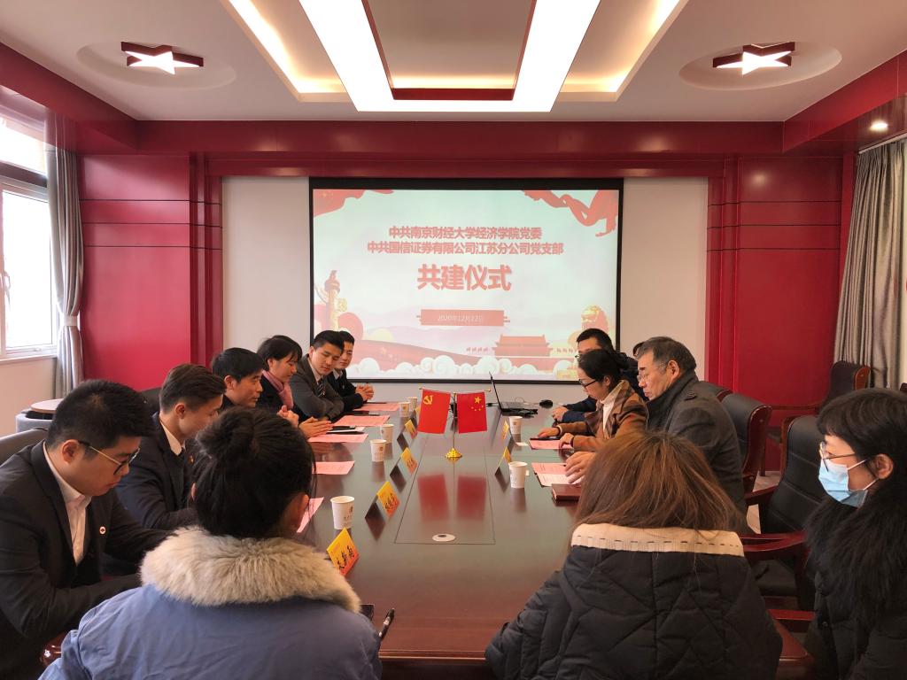12月22日下午,XK星空体育党委在仙林校区德经楼329会议室与国信证券股份有限公司江苏分公司党支部举行党建共建签约仪式。国信证券股份有限公司江苏分公司党支部书记、总经理祁立林及部分党员代表,XK星空体育党委书记陈耀辉,学院教工行政支部党员参加签约仪式。仪式由学院党委副书记袁怡琨主持。