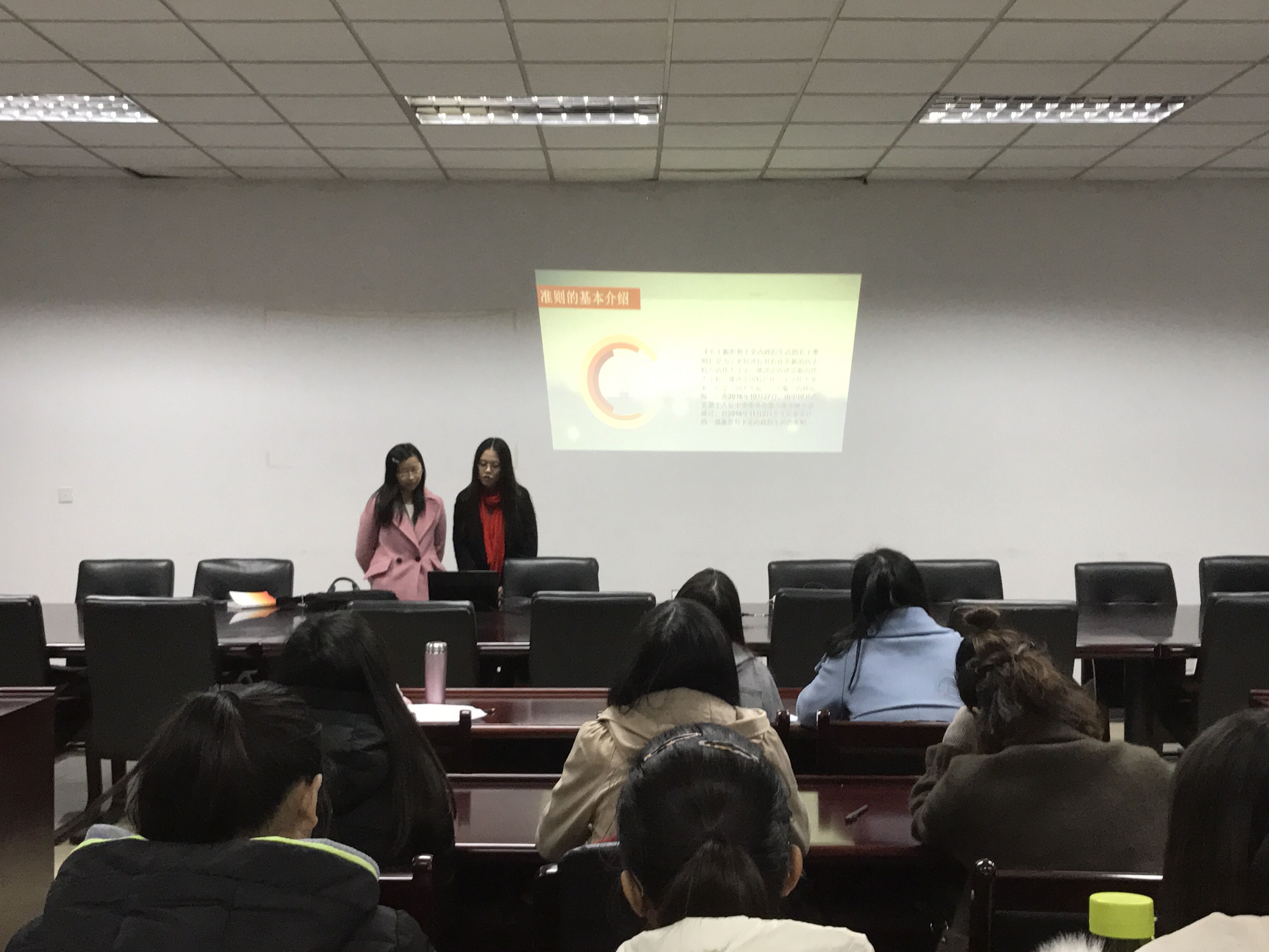 在讨论活动前,同学们以自学的形式,学习了党的十八届六中全会的重要精神,并认真阅读和学习了《准则》和《条例》的重要内容,加深自身对坚定理想信念,模范遵守党章党规,严守党的政治纪律和政治规矩等的理解与感悟。在专题学习会上,学生党员刘玉兰等同志详细介绍了《准则》和《条例》的修订背景,重点解读了《准则》和《条例》的主要内容,使学生党员们在前期自学的基础上对两部党内法规有了更深入的理解。随后,学生党员们展开积极讨论,分享自己的学习心得与体会。