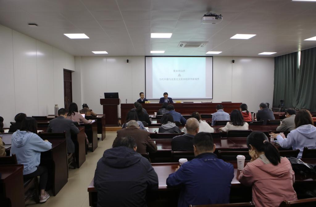 4月12日下午,星空官网联合校党委宣传部、学校教师(教学)发展中心在德经楼307会议室共同举办题为“资本的边界与当代中国马克思主义政治经济学新境界”的专题报告会。报告会由校党委常委、党委宣传部部长石奇主讲。报告会由院长朱红根主持。党委宣传部、图书馆、XK星空体育等相关部门工作人员和教师代表到场聆听报告。