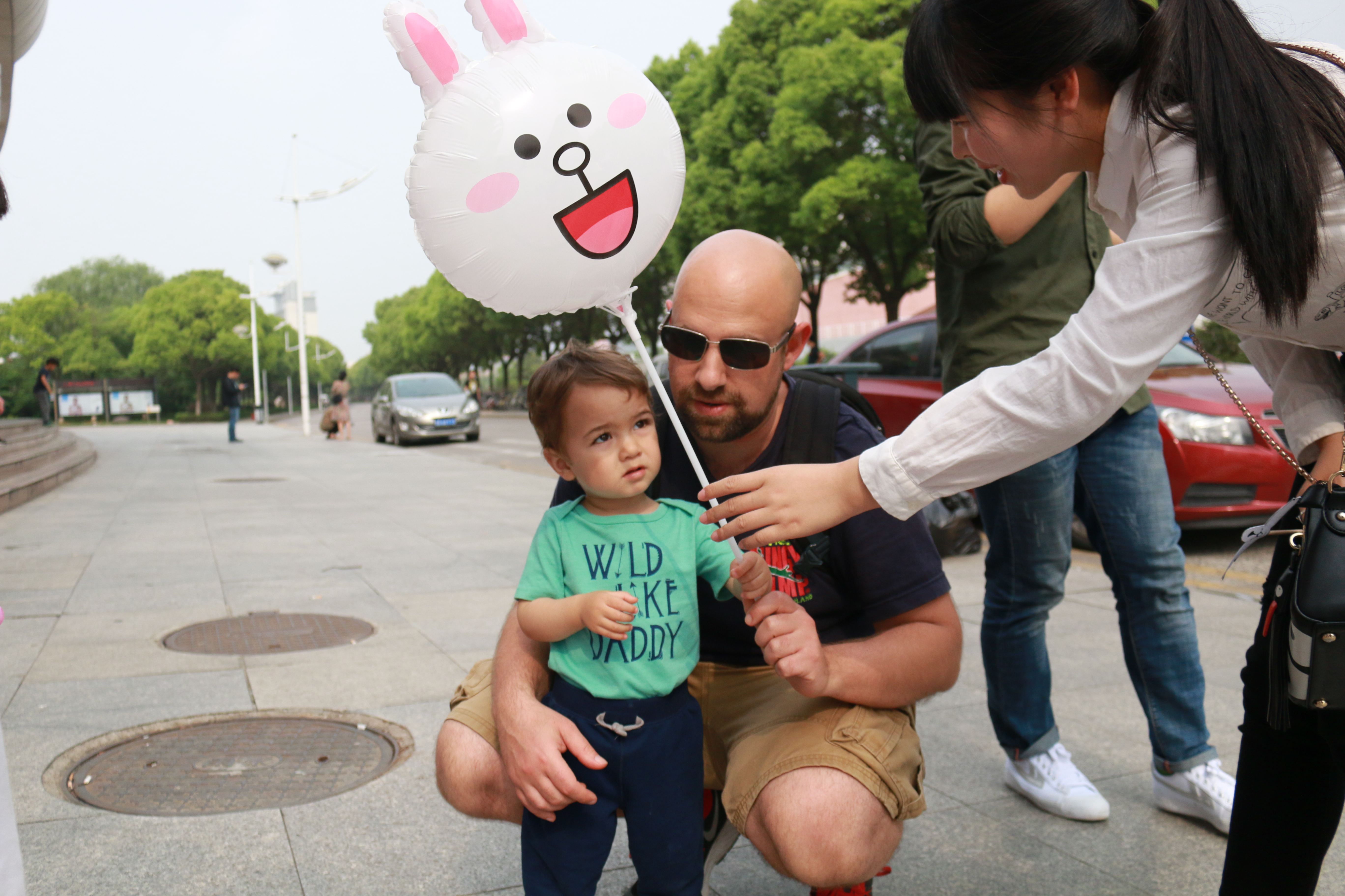 在西苑食堂前,选手们偶遇一位英国大叔带着五岁的儿子散步,这可让领到“与外国友人微笑合照”任务卡的同学高兴坏了。同学们使用英语邀请他们微笑合照。在大家微笑的感染下,英国小男孩也收起了先前的拘谨,开心地与同学们微笑合照。