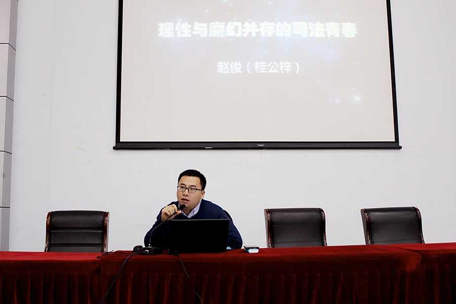 12月1日晚,应星空官网邀请,江苏省高级人民法院法官、作家赵俊先生在我校仙林校区经济学科楼报告厅作了题为“理性与魔幻并存的司法青春”的讲座。我校部分师生到场聆听讲座。