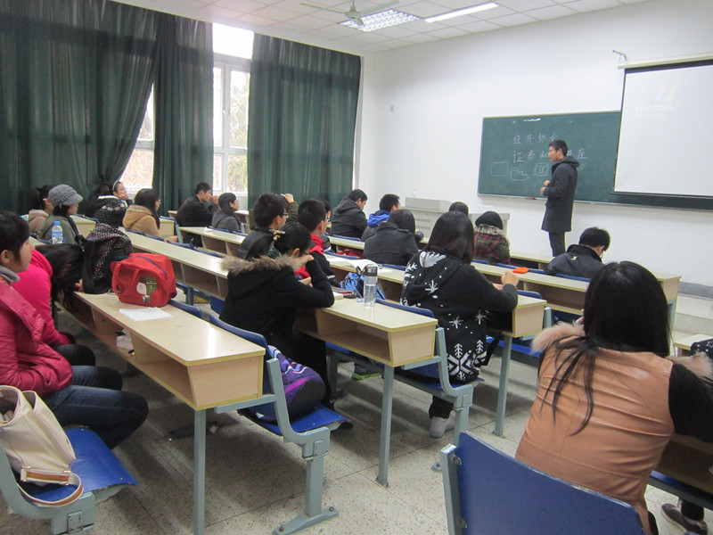 2012年11月16日,经济协会在专二105教室举办了证券知识的专题讲座。华泰证券公司的项目经理应邀主讲了此次讲座。尽管阴雨绵绵,依然阻挡不住同学们来聆听此次讲座的热情。