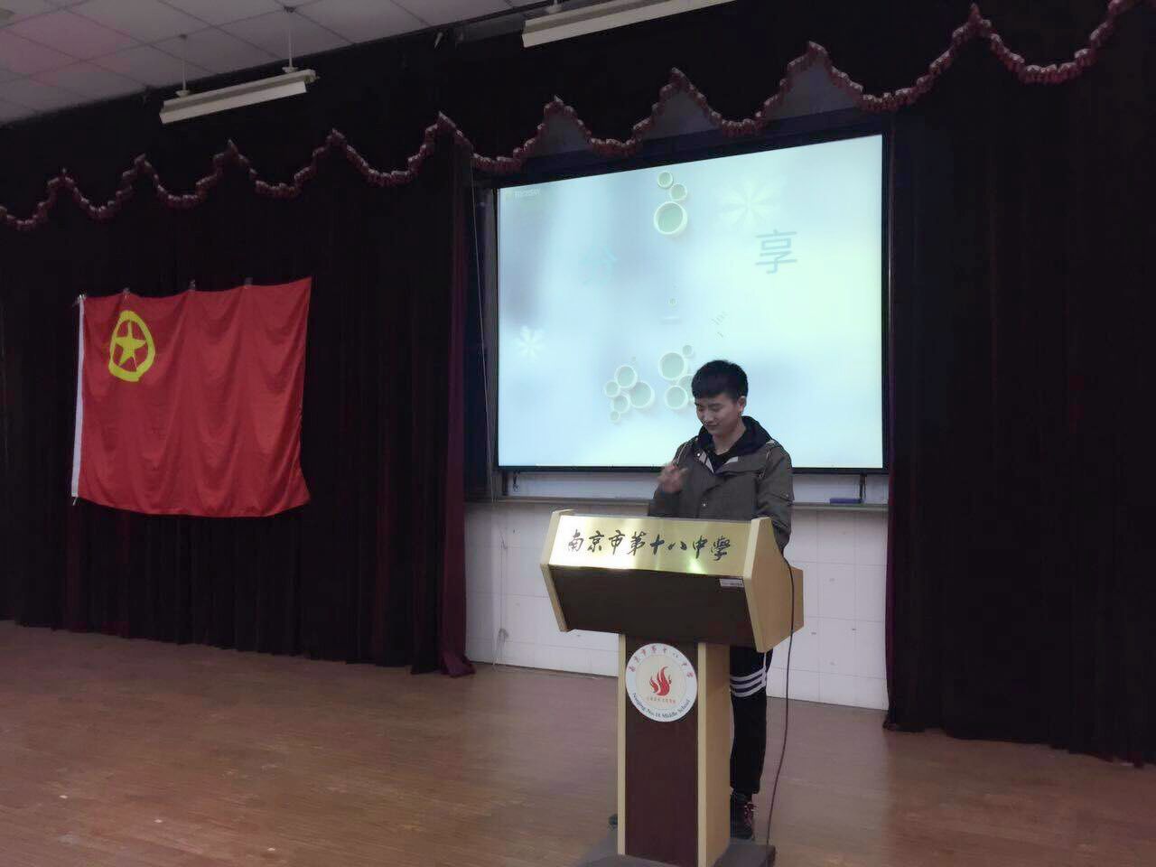 大学是学习生涯的一个转折点,也是我们向梦想发起冲击的一个新起点。为帮助中学生更好了解大学生活,应南京市第十八中学邀请,5月10日下午,星空官网优秀学生党员、国家奖学金获得者杨帅同学,前往大学生社会实践基地的南京市第十八中学,开展“奋斗的青春最美丽” 主题经验分享会。活动由第十八中学的杨意仙老师主持,第十八中学的部分师生到场聆听了分享会。