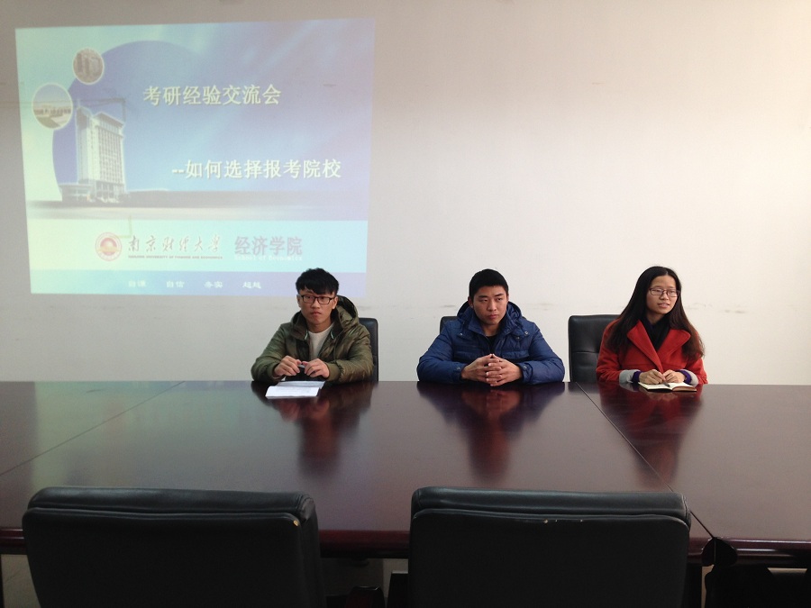11月27日下午,仙林校区经济学科楼307室举办了以“如何选择考研院校”为主题的考研经验交流会,此次交流会由学生处主办,星空官网承办。交流会邀请到的主讲嘉宾是仝玉超、倪蓉、马磊三位同学。