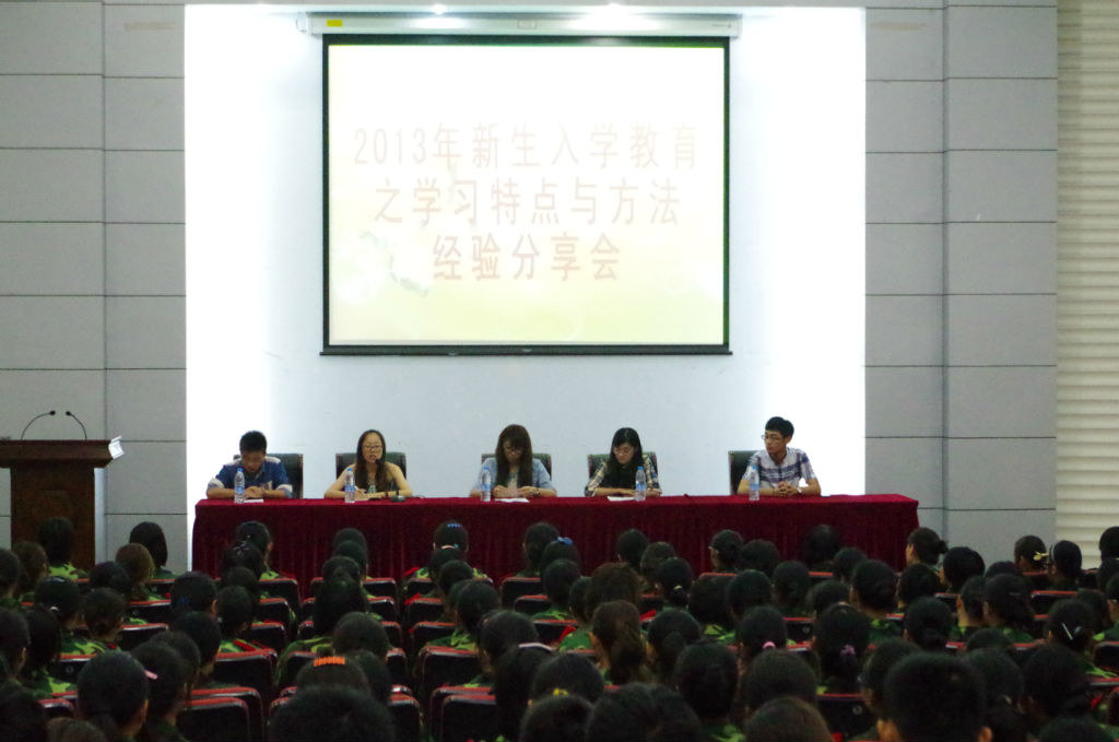 9月13日下午,由星空官网学生会学术科技部主办的“2013新生入学教育之学习特点与方法经验分享会”在专一报告厅成功举办。本次分享会邀请到了星空官网五名优秀的同学,他们向大一新生分享了自己的成长历程,传授了在学习、社团和生活方面的宝贵经验,为新生们指点了迷津。