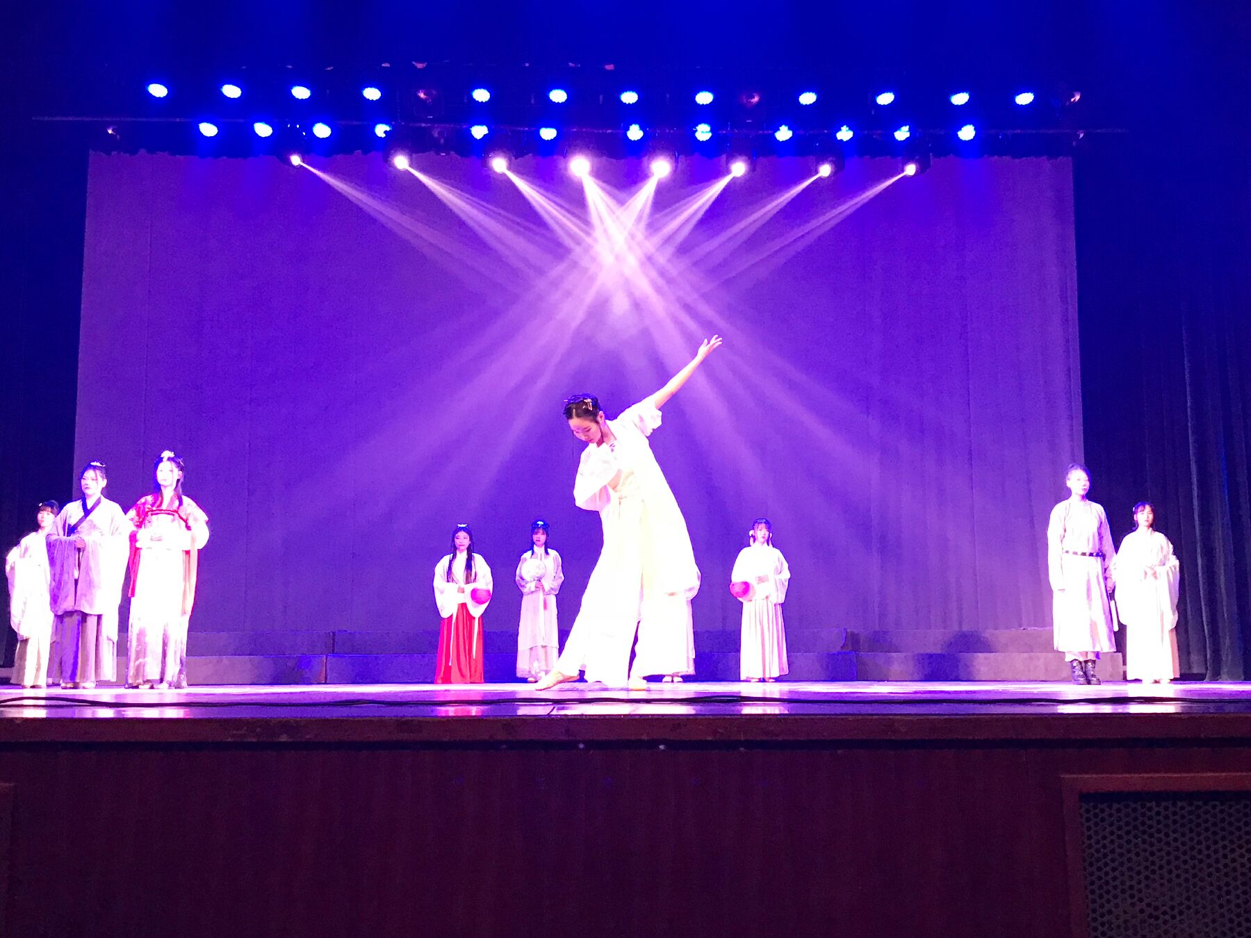 班级文化展在基地1701班带来的团体舞蹈《怦然心动》中拉开帷幕。曼妙婀娜的舞姿,动感十足的节奏,带动了现场热烈的气氛。经统1702班带来的《渔舟唱晚》,将舞蹈表演与古筝弹奏完美结合,轻柔舒缓,动人心弦。基地1603夏立巴提深情演唱《想念》,婉转动听,扣人心弦,用歌声诉说出心中的想念。汉韵琴社带来的汉服朝代秀《枫红满径,古韵思今》新颖独特,贯穿古今,赢得现场观众的连连赞赏。基地1601班带来钢琴独奏《梦中的婚礼》如梦似幻,清澈纯净,空灵的钢琴声在大礼堂内回响;诗朗诵《祖国万岁》情感真挚,慷慨激昂,诉说着对祖国母亲的爱。基地1702陈玉遥带来的《旅行的意义》舒缓柔和,悦耳动听,以别样的方式诠释了旅行的意义。基地1602张桂东演唱的《南财版成都》旋律优美,独具匠心,表达了对南财的深情礼赞,赢得观众的阵阵欢呼。基地1603班表演的歌舞《告白青春》独具特色,用一个个小情景展现了青春的悸动与澎湃,一度将现场气氛推向高潮……晚会现场表演不断,精彩纷呈。最后,经统1703班带来的合唱《最初的梦想》用洋溢的热情和朝气演绎出青春的魅力与飞扬的梦想,班级文化展就此落下帷幕。