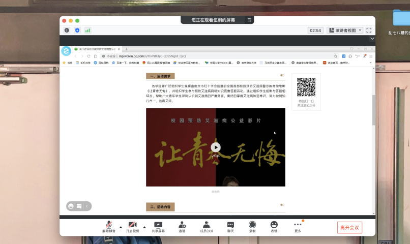 根据南京市红十字会和学校统一安排,为进一步落实艾滋病预防和控制工作,帮助星空官网学生更好地掌握艾滋病防范常识,引导学生树立防艾观念、加强防艾意识。2021年2月4日起,XK星空体育分团委积极宣传,通过线上形式开展防艾警示教育活动。本次活动由XK星空体育各班级通过组织观看相关的防艾宣传警示性教育片的形式开展,各班同学踊跃参与。