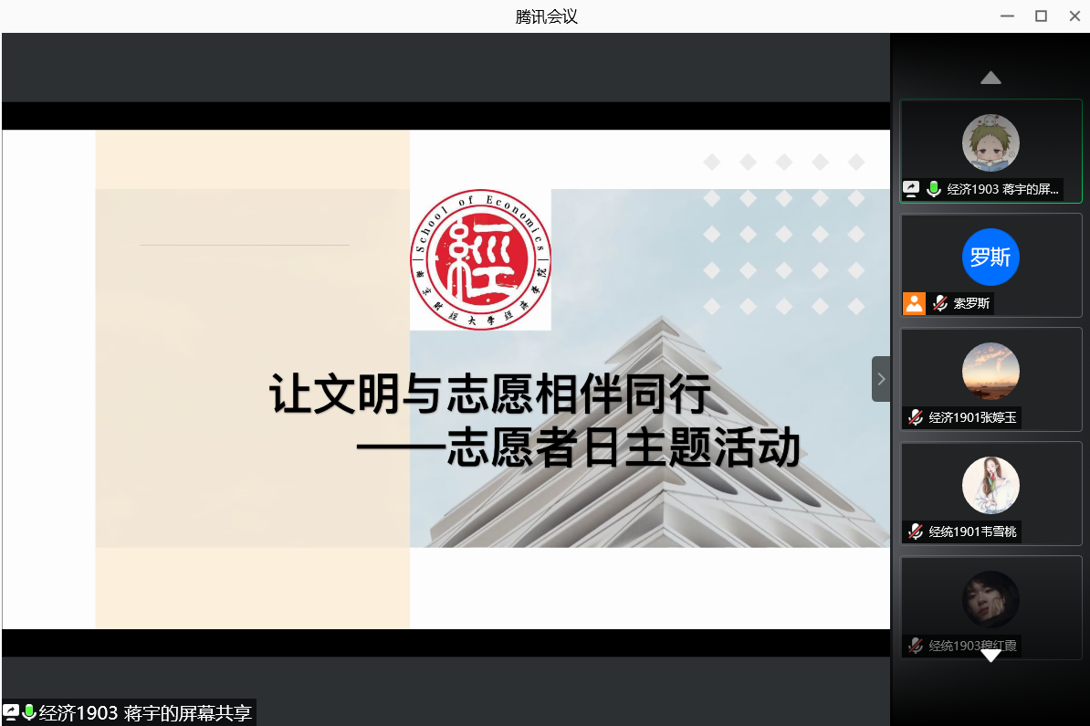 志愿活动的参与,不仅仅只有线下的形式。经济1903班的陈阡陌同学向大家分享了“如何做好线上志愿活动”经验。在这个寒假她采用线上的方式响应国家防控疫情的号召,即通过QQ与微信公众号推送分享抗疫故事,宣传抗疫知识来协助防控疫情。