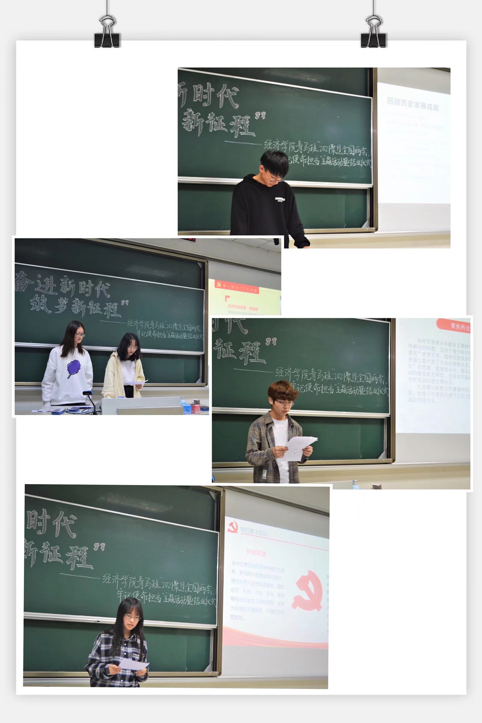 随后由青马班各小组成员代表依次进行主题演讲,聚焦十三届全国人大四次会议和全国政协十三届四次会议,旨在更好的理解2021年“两个一百年”奋斗目标的内在含义,各小组分工明确、立意深刻、条理清晰,评委提问妙语连珠。