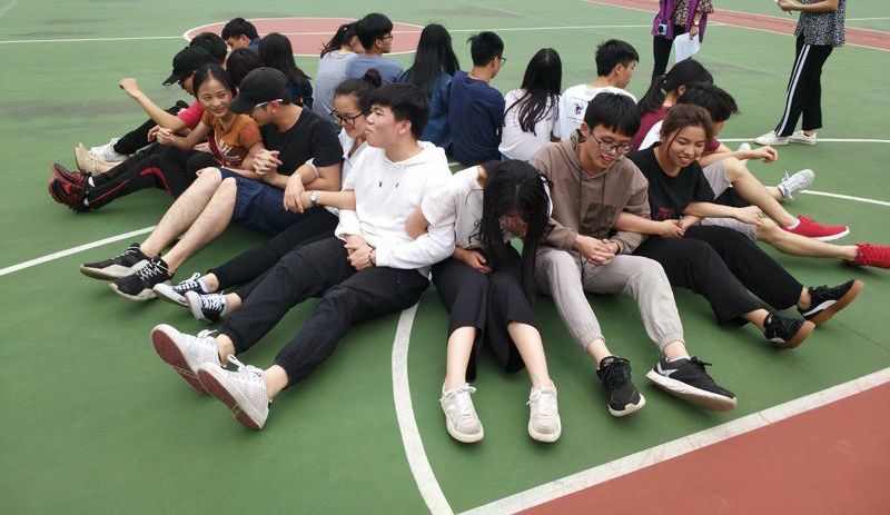 “快速穿梭”项目有助于同学们相互磨合,齐心协力完成游戏任务。