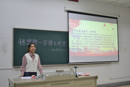 4月27日晚,XK星空体育分团委在德经楼110教室开展“悟思想·劳模大讲堂”活动,分团委副书记、各班级团干部、分团委工作人员及学院部分学生参加了活动。活动分为三个环节,首先,全体同学集体观看五一劳动节宣传视频,明白劳动节的来历,了解中华优秀传统文化;听习近平总书记说给劳动者的“暖心话”,大力营造劳动氛围;通过分享一件件党史小故事,讲述以习近平同志为核心的党中央领导全国人民脱贫奔小康方面取得的伟大历史性成就,激发大家奋发向上的大能量。二是由优秀志愿者学生代表朱海荣和优秀抗疫志愿者冯叶欣开展党史学习教育宣讲活动,讲述自己的志愿者活动经历与感悟,号召大家积极参加志愿活动,大力弘扬热爱劳动、热爱学习、乐于奉献的高尚品质。三是观看学习劳模工匠视频,学习他们在平凡的岗位上默默无闻的奉献精神。然后以小组为单位进行讨论,交流自己的观影心得体会,分享身边的感人故事,大力弘扬劳模精神和工匠精神,学会感恩。