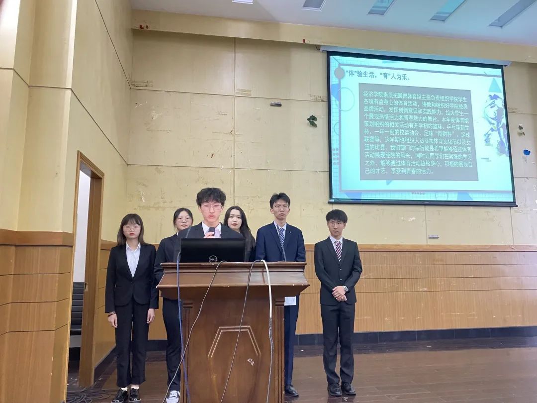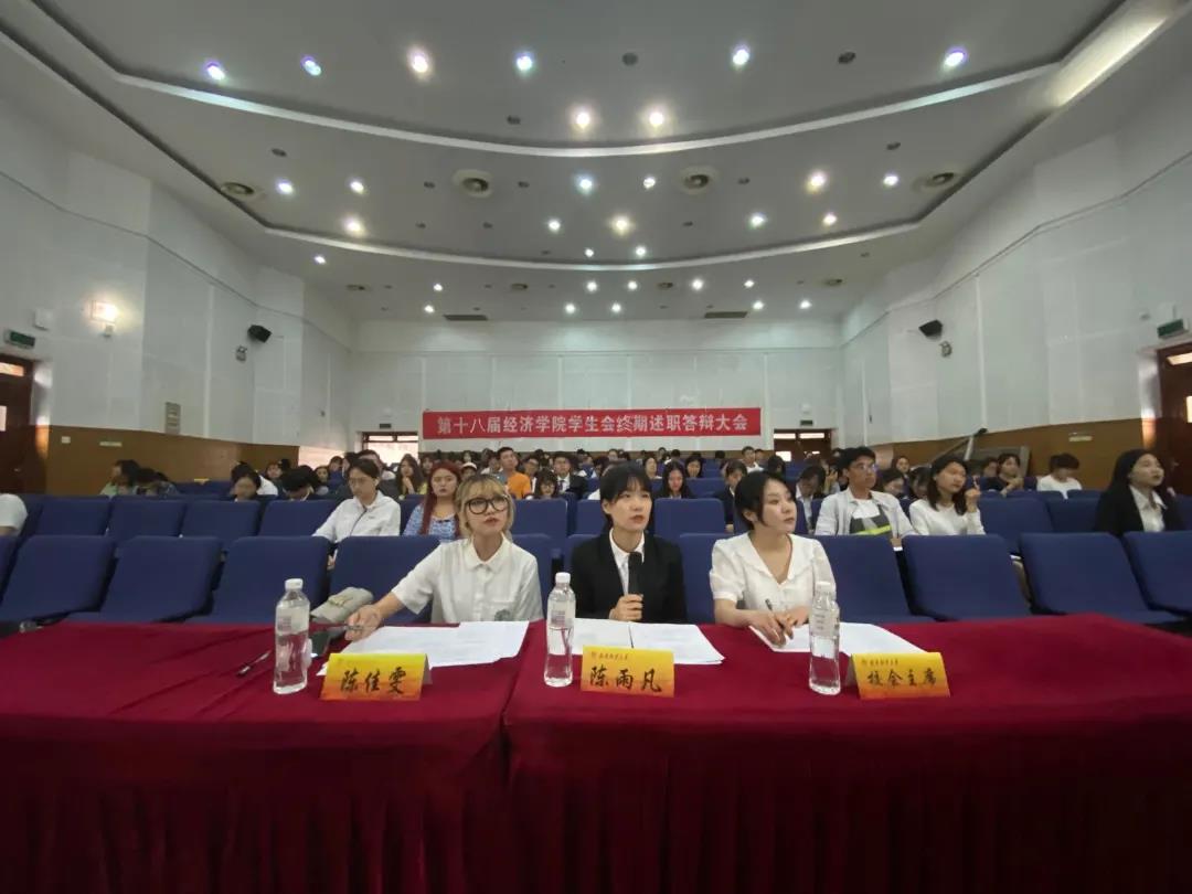 各中心述职答辩环节中,各中心进行为期五分钟的述职报告,报告内容包括以PPT的形式展示本部门一年的工作情况,总结工作得失,结合自身部门特点,向在场的学生会成员分享工作经验,认真分析部门存在的问题并表达了对下一阶段部门工作不断完善的期望。报告结束后,由主席团提出这一年工作中存在的问题,各部长进行限时答辩。中场休息环节,各中心的志愿者们分别以趣味小视频、诗歌朗诵、说说心里话的方式,回忆了在学生会充实快乐的时光,表达了对各中心部长及成员团结协作、友爱共进的感谢,学生会大家庭的美好祝愿。