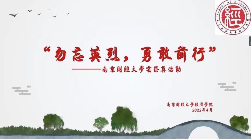 星空官网学生会举办了清明“云祭奠”活动,缅怀为了民族独立和人民解放抛头颅、洒热血的革命英烈,创作出了很多以“勿忘英烈,勇敢前行”为主题的文章、摄影和诗歌作品。经济2105班曹光璇同学联想晏殊《破阵子·春景》中的“燕子来时新社,梨花落后清明”,提笔写下文章《承英烈之远志,扬中华之旌旗》,以此祭奠先烈,希望他们被永远铭记,永远活在这草长莺飞的春日里。经济2101班乔昱同学则在她的诗歌作品《你听》中刻画了一群枪林弹雨中的英雄和一位像陈陆烈士一样为解救被困洪水中的群众而牺牲的战士,希望青年传承不怕牺牲、勿忘英魂的精神,勇敢前行。笔名为雁栖的同学展示了其创作的诗歌《碧血丹心,忠贞不渝》,诗中描写了过去的辉煌、近代的衰败以及一代代先烈们筚路蓝缕的奋斗史,寄语中华民族伟大复兴和对未来的展望。经济2101班张欣雨同学以文章《年年祭扫先人墓,处处犹如长春风》来纪念为新中国献出宝贵生命的英烈们。经济2101班俞妍同学展示了在参观侵华日军南京大屠杀遇难同胞纪念馆时所拍摄的照片,警示人们铭记历史,砥砺前行。同学们纷纷表示要牢记革命先烈的伟大功绩,继续发扬革命先辈的优良传统,传承红色基因,将思念写在山河大地,勇立时代潮头,争做时代先锋。