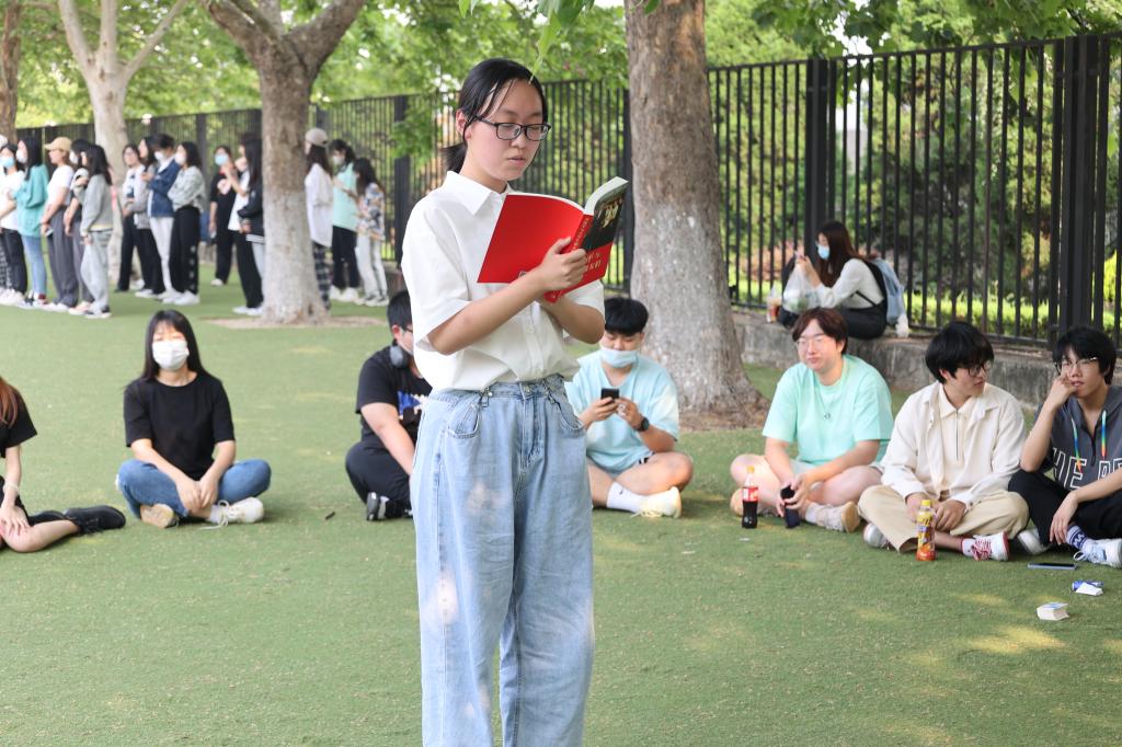 星空官网2102班的汪琰同学领读到“同学们到基层去,到边远地区去,到社区去,到农村去,到军营去!……”时,她停下来,神色动容地与同学们分享自己参加返家乡社会实践活动,做驻村大学生时为村民排忧解难的经历,鼓励同学们积极参与社会实践活动,以此来长才干、强本领。她强调:我们青年学子既要积极开动脑筋,攻坚克难,开拓全新领域,更要沉心静气,有把冷板凳捂热的勇气和能力。同学们被书中的精神感动,纷纷检阅自身,表示将以时代责任为己任,为实现第二个奋斗百年目标贡献自己的青春力量。