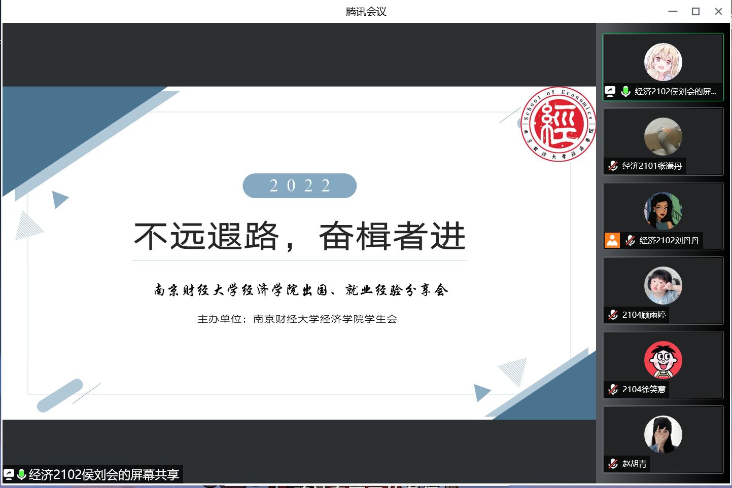 为增加同学们对出国与就业的了解,5月20号晚,XK星空体育于线上召开“不远遐路,奋楫者进”出国、就业经验分享会。本次活动邀请到的分享嘉宾是被英国格拉斯哥、南安普顿大学录取的经统1801吕建奇同学、被英国格拉斯哥大学录取的经济1803葛菲同学、被中国工商银行股份有限公司盐城分行录取的经统1801黄同峒同学和被无锡小天鹅电器有限公司录取的经统1801邱赛娟同学。