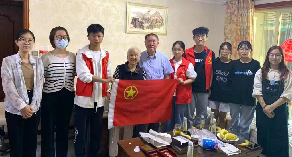 当天上午,志愿者们带着水果与鲜花等慰问品,敲响了两位老先生的门。在董伦老先生家中,他向志愿者们介绍了抗美援朝战役的历史背景,让志愿者们直观感受到了中国人民志愿军的献身精神。在提及中共中央作出“抗美援朝,保家卫国”的战略决策时,董伦老先生眼中饱含热泪。他亲切地讲述了自己的军旅生活,作为一名标图员,他积极参战,通过雷达传递的信息,在地图上快速标注敌机位置并上报给领航员帮助指挥作战。通过董伦老先生的描述,志愿者们仿佛置身于那个战火纷飞的年代。一块块荣誉勋章也让志愿者们更深刻地感受到了抗美援朝老兵的拳拳爱国之心。最后,董伦老先生在感慨如今的幸福生活的同时,也希望所有新时代青年好好学习,为时代发展做贡献。