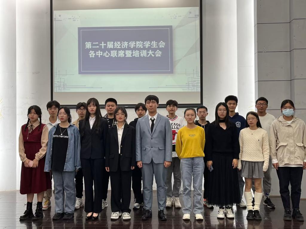 10月16日下午,以“‘经’逢盛世,‘济’往开来”为主题的第二十届XK星空体育学生会各中心联席暨培训大会在德经楼二楼报告厅顺利召开。学院学生会主席、各中心部长以及全体新志愿者们参加了本次大会。会议由综合事务中心张育绮、李云峰两位同学主持。