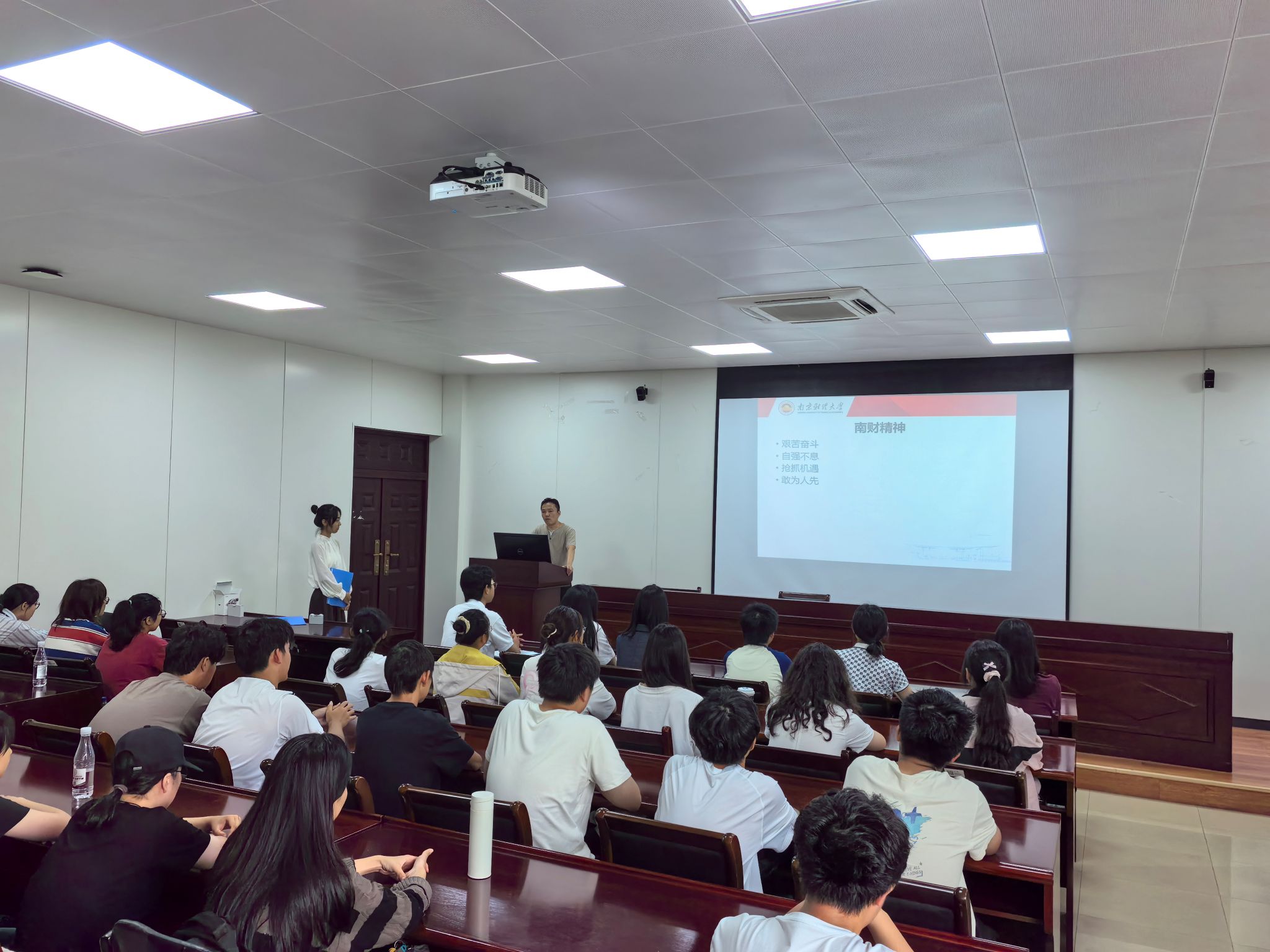 班会分为四个环节,第一个环节是思想政治引领,张闻老师开展了党史学习教育,系统地介绍了中国共产党在国民革命战争时期的艰苦奋斗史。随后,张老师带领新生们深入学习了党的二十届三中全会精神,重点领会中国共产党改革开放的毅力和决心。第二个环节是荣校爱校教育,张闻老师带领同学们学习了星空XK的办学历史、校训和南财精神,介绍了南财优秀学子事迹,号召同学们学习先进典型,以南财人为荣,为南财争光。第三个环节是介绍XK星空体育的培养理念和培养成果,张闻老师详细说明了学院的科研特色、竞赛机制和特色品牌活动,呼吁同学们将专业知识和乡村振兴、绿色经济结合起来,积极申请各类项目、参加各项比赛和志愿服务活动,在实践中出真知,在实践中讲奉献,在实践中做贡献,体现经院学子的责任担当和使命担当。第四个环节是青春远航,同学们纷纷发表自己的青春宣言,为成为社会主义的合格建设者和接班人做好充分的准备。