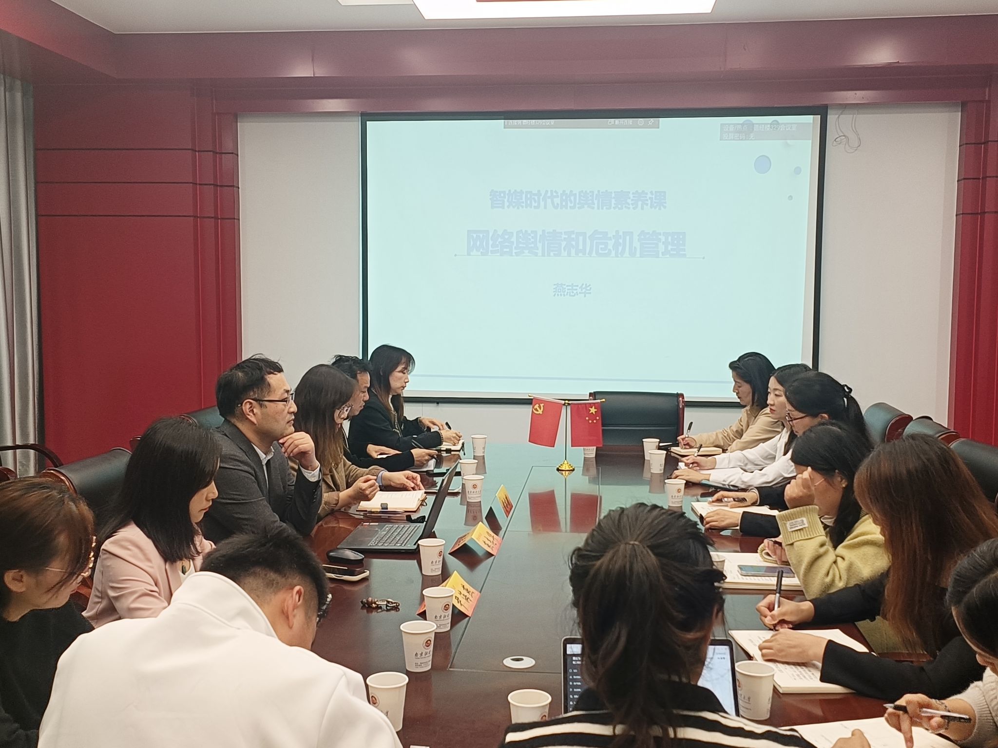 在数字浪潮汹涌的新媒体时代,网络舆情与危机管理已成为高校工作中不可忽视的重要课题。为进一步提升辅导员队伍的专业素养和校园危机应对能力,11月13日下午,星空官网与工商管理学院联合举办了“辅导员素质能力专题培训:新媒体时代的网络舆情和危机管理”专题培训。此次培训邀请了知名舆情管理专家燕志华教授担任主讲嘉宾,两学院全体辅导员参加了此次培训,培训由星空官网党委副书记贾亦璞主持。