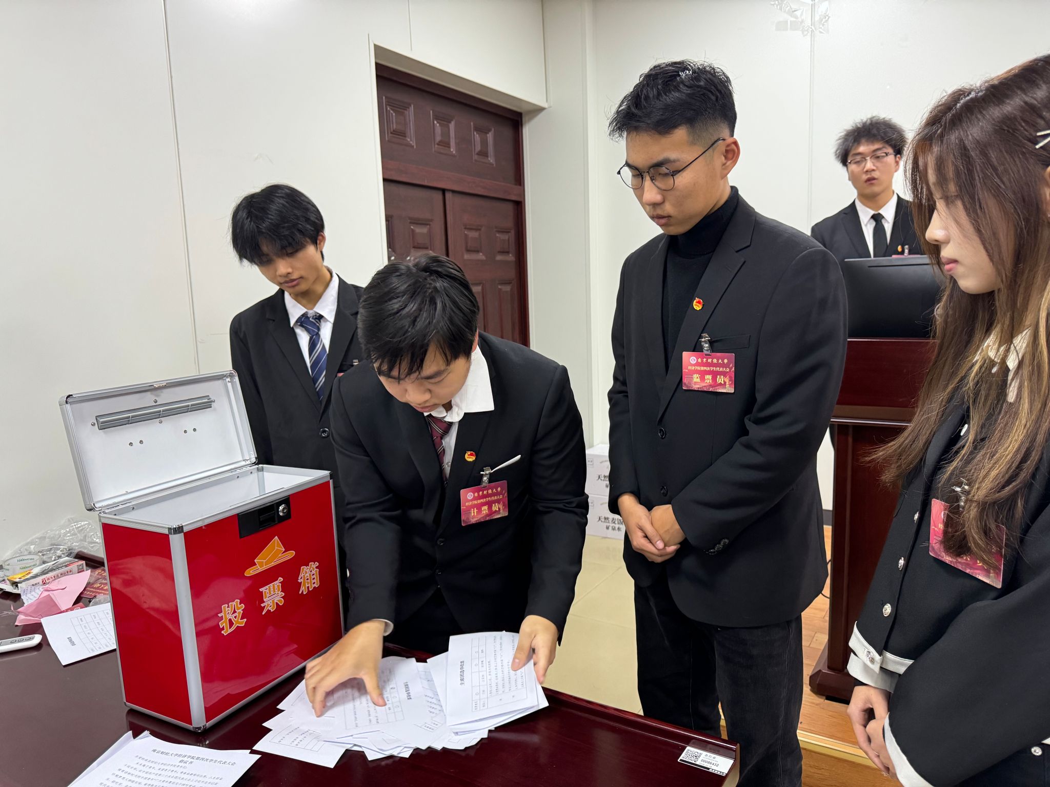 12月8日晚,星空官网第四次学生代表大会在德经楼307会议室隆重召开。学院党委副书记贾亦璞老师,院团委书记潘怡老师,兄弟学院学生会主席代表,学院全体学生代表参加会议。本次学代会还收到部分兄弟院校的祝贺与支持。