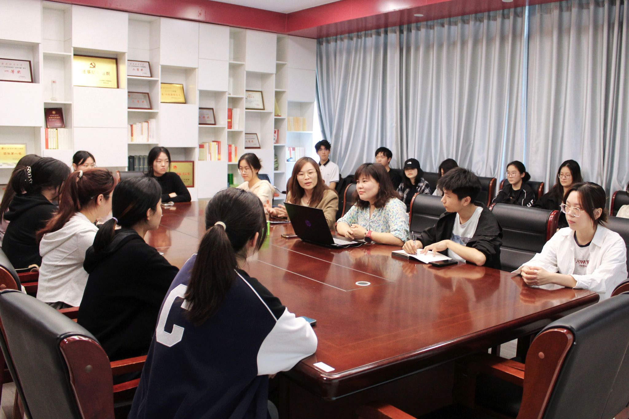 问答环节中,同学们踊跃发言,围绕创新宣传模式、提升受众参与度等议题展开讨论。毛珺纹同学结合信息化时代背景提出,可在宣传中融入网络热梗,以“热梗+正能量”的融合模式来增强宣传内容的趣味性,达到更鲜活的“破圈”传播。龚莉红老师对同学们的创新思路给予高度评价,鼓励大家开拓创新,并表示将整合传播资源、强化多维互动,与同学们共同探索宣传工作新路径。