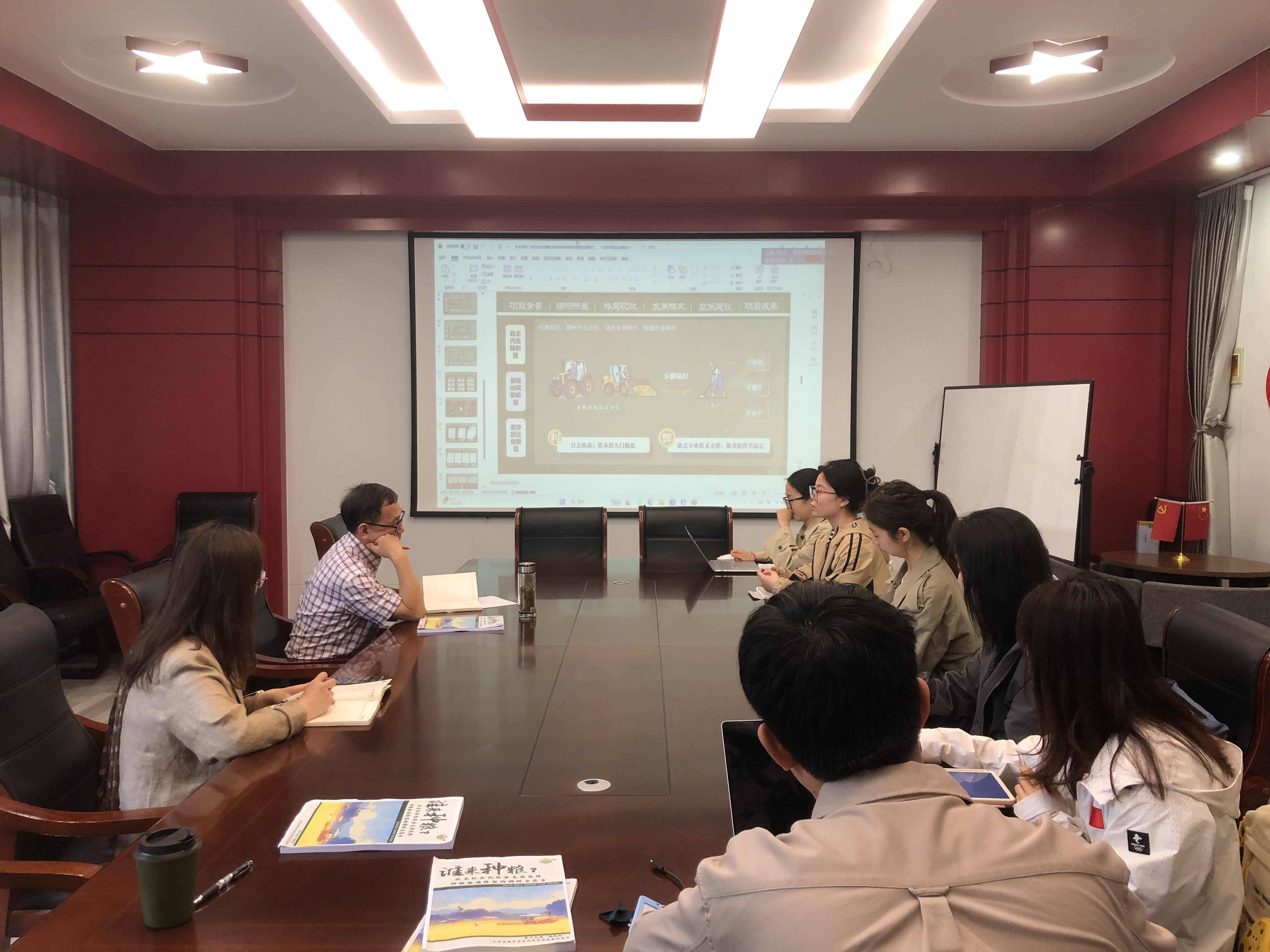会上,各项目负责人通过PPT讲解、视频播放以及现场答辩的方式向老师展示了本组参赛项目成果,并围绕作品核心内容、所处学术地位、主要创新点及现实意义等方面进行了详细汇报。老师带领各团队重点梳理了大赛的重要时间节点和参赛作品新变化,围绕今年大赛在网评阶段的作品文本注意事项、评审标准、选题方向等重点内容进行了详细解读,针对各项目进行一对一辅导。随后,各项目组在现场就备赛问题展开热烈交流。在点评交流环节,老师紧扣大赛评分细则,进行了全面点评,并对每项作品所存在的短板、不足给予了中肯意见和建议,使师生们受益匪浅。