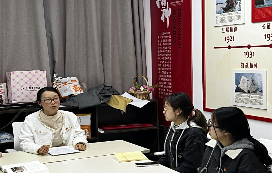 活动伊始,党支部书记梁少颖老师结合个人阅读经历,深刻阐释红色经典对党员思想政治建设的现实意义。她强调,阅读红色经典不仅是感悟革命精神的重要途径,更应成为党员终身学习的自觉习惯。青年党员既要深耕红色书目筑牢信仰之基,也需广泛涉猎专业文献提升本领。梁老师特别指出,党员应主动走进图书馆,在沉浸式阅读中陶冶身心,并建议将红色经典诵读、专业书籍研讨纳入每周组织生活,推动阅读常态化。梁老师的发言既呼应了学校“党建+阅读”的创新模式,又立足经济学科特色提出实践路径,为活动奠定了"以学铸魂、以学增智、以学正风、以学促干"的基调。