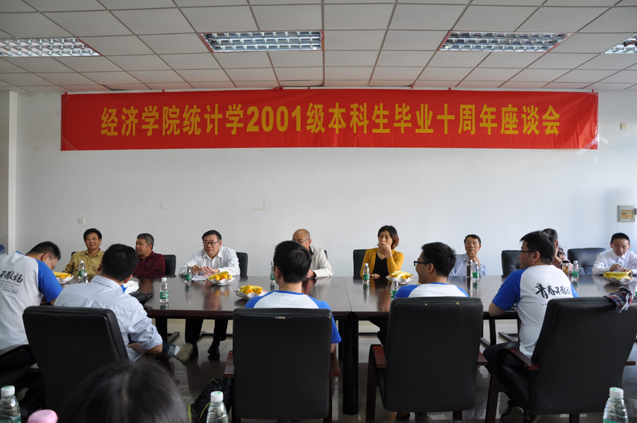 陈耀辉副院长首先代表学院全体教师表达了对同学们的欢迎之情,并介绍了学校和学院近年来的发展情况;杨益民教授随后回顾了与大家共度的四年时光,补充介绍了统计学学科十年来所取得的成绩。同学们对母校和学院近年来的发展表示由衷的赞叹,纷纷表达“回家”的喜悦、对母校的眷恋和对老师们的感谢与思念之情,同学们还就各自目前所从事的行业和职业进行了介绍,并对学院的相关工作提出了宝贵的建议和意见。