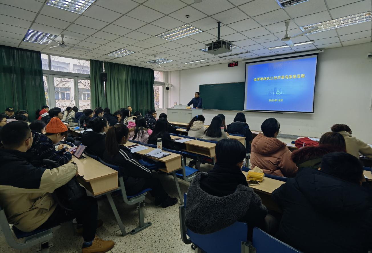 2020年12月2日下午,南京市发展和改革委员会长江经济带发展处处长、南京社科联常委殷京生应邀在德经楼202教室作了题为“全面推动长江经济带高质量发展”的学术讲座。本次讲座由党委宣传部和XK星空体育主办,党委宣传部副部长秦韶华主持,星空官网部分教师和研究生聆听了本次讲座。