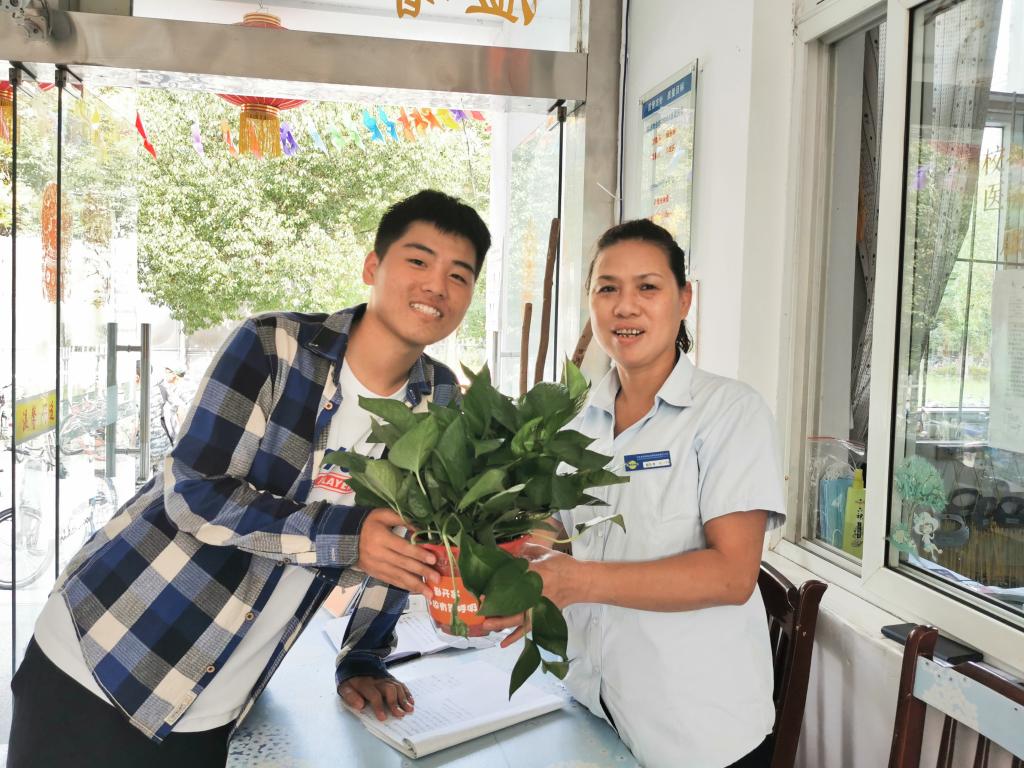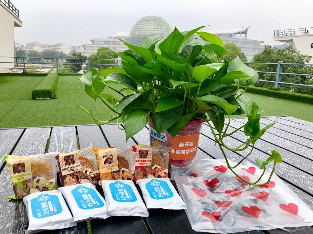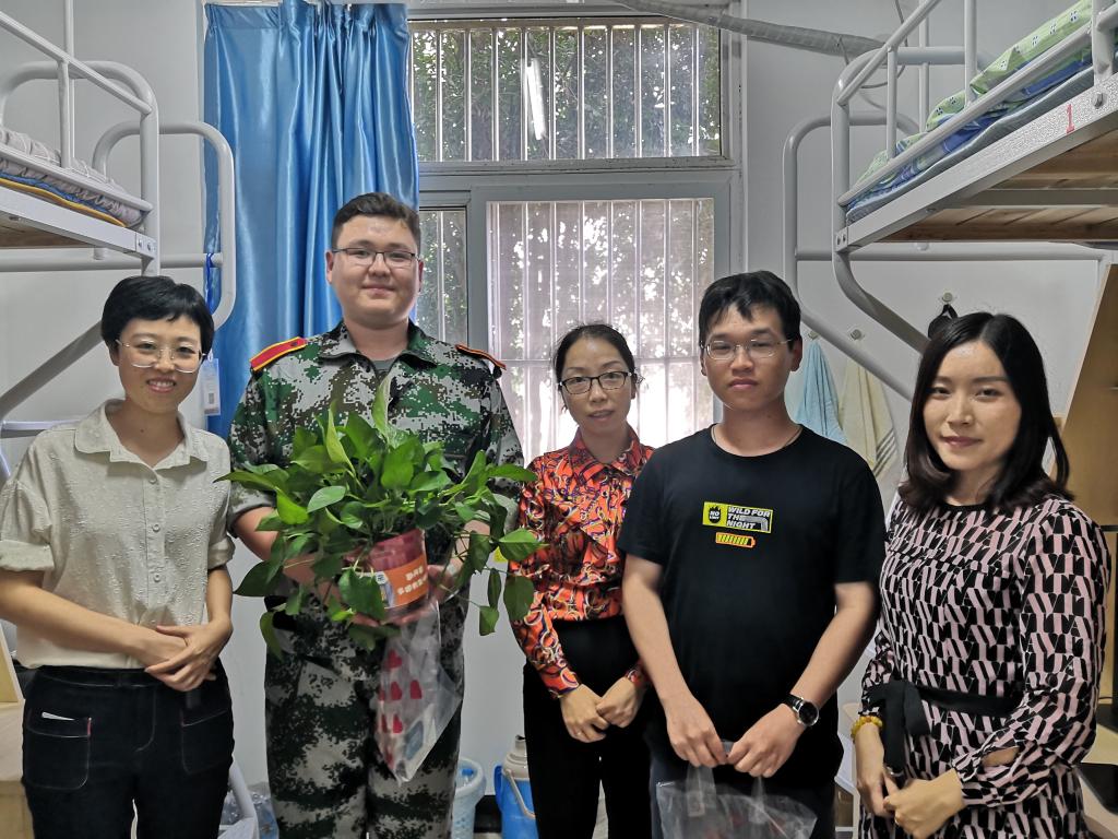 国庆和中秋佳节在即,为了让刚入校的2020级新生欢度更快适应环境、欢度大学里的第一个节日,感受到来自学院的温暖,9月23日中午,星空官网党委副书记袁怡琨老师、学工秘书尹海燕老师、新生辅导员陶海韵老师和院学生会的同学们来到学生宿舍,为每个小寝送上绿萝,并为每个新生带来中秋月饼、消毒湿巾等节日礼品。
