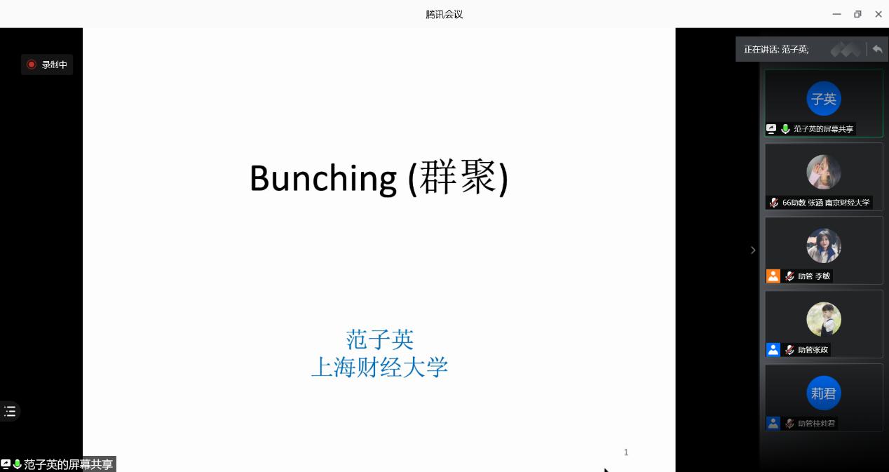 8月19日上午,上海财经大学范子英教授为暑期学校的学员们作了题为“Bunching方法的原理及其应用”的专题讲座。讲座由星空官网崔向阳教授主持,暑期学校全体成员及我校部分青年教师参与了此次讲座。
