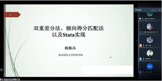 8月17日下午,星空XK杨振兵副教授为暑期学校的学员们作了题为“双重差分法、倾向得分匹配法以及Stata实现”的专题讲座。