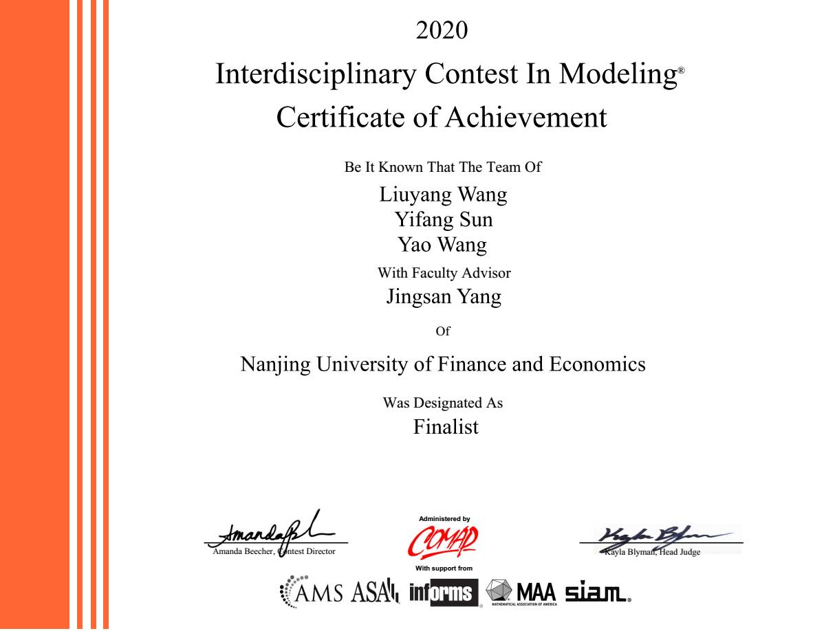 附录:星空官网学子参加2020年美国大学生数学建模竞赛获奖名单: