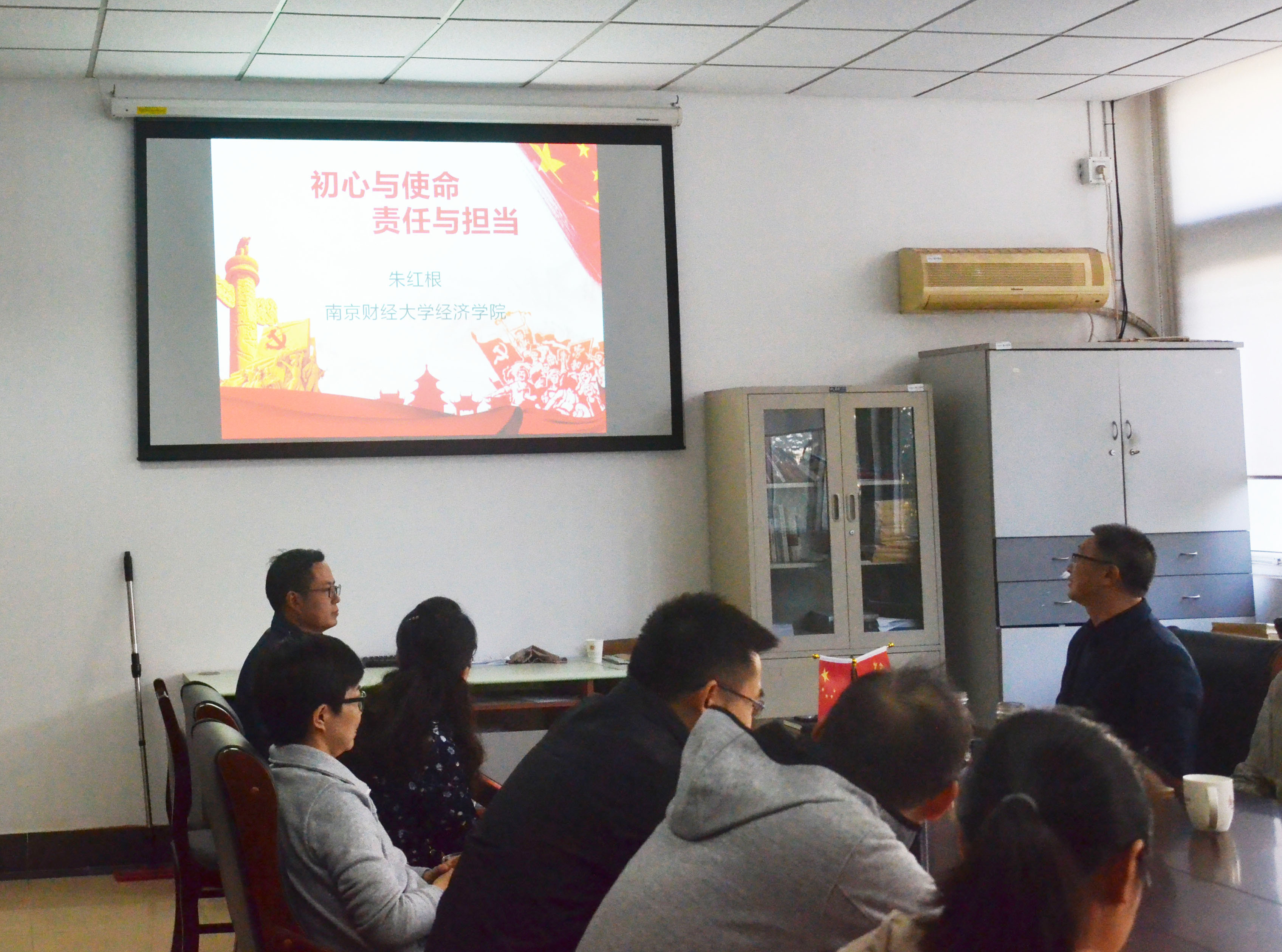 2019年11月6日下午,根据“不忘初心、牢记使命”主题教育工作的安排,在德经楼329会议室,星空官网朱红根院长和张成副院长分别为经济学系教工支部的广大党员讲授党课。经济学系教工支部全体党员参加了本次党课学习活动。