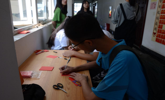 图为XK星空体育2019级新生在“红包心愿墙”处写下自己的“心愿”