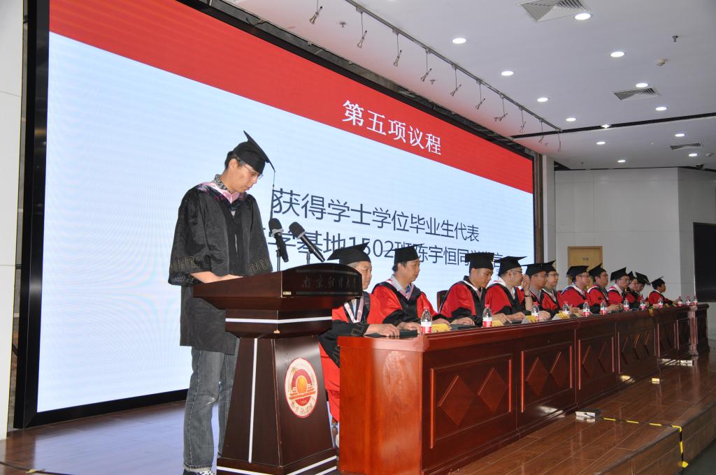 基地1502班陈宇恒同学作为毕业生代表发言。他首先向辛勤培育同学的领导与老师表示由衷的感谢,向全体毕业生表示真诚的祝福。他回顾了四年大学生活的每一瞬间,分享了四年来发生在XK星空体育的青春故事。在充满离别味道的六月,他在此告别南财、告别经院,与美丽校园道一声“再见”,向老师道一声“感谢”,对同学们说一声“珍重”。