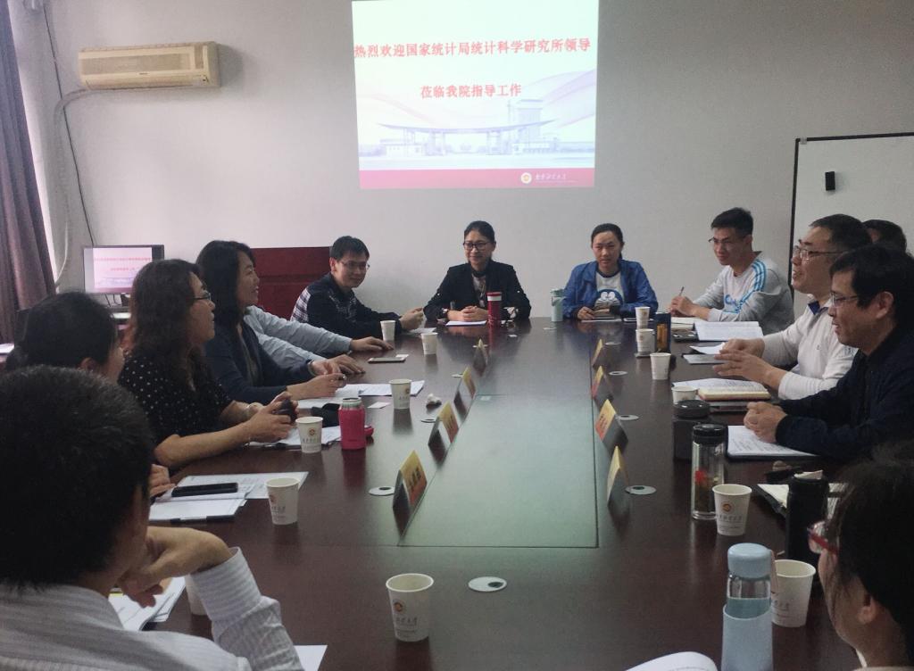 4月26日下午,应星空官网邀请,国家统计局统计科学研究所赵莉副所长、江苏省统计局统计科学研究所王思彤所长、《调研世界》编辑部主任孙继伟、编辑孙娜娜一行四人来XK星空体育调研座谈,座谈会由星空官网党委书记陈耀辉主持,星空官网部分教师及研究生参加了此次座谈。