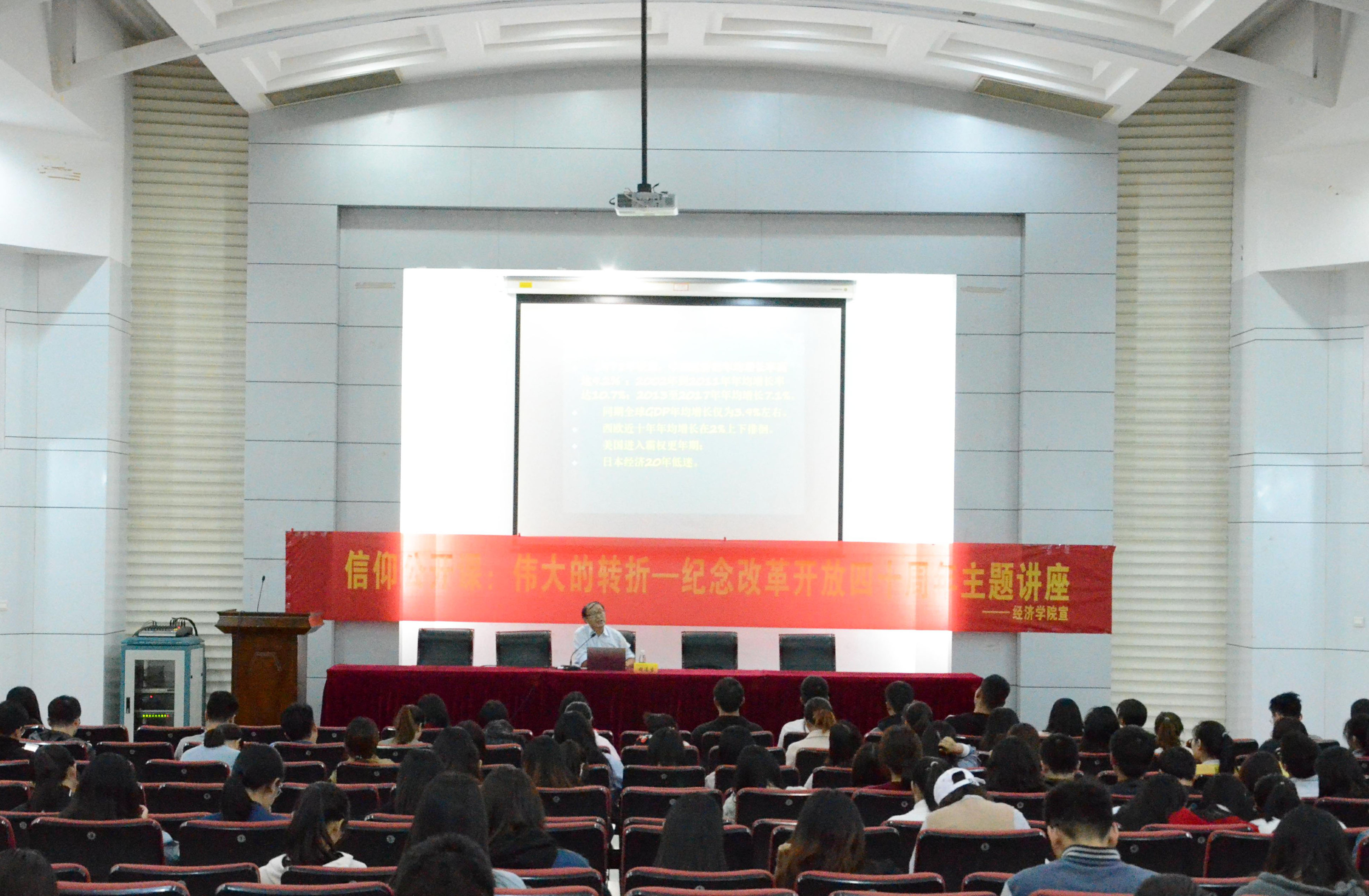 首先,胡教授以改革开放四十周年我国所取得的巨大成就开篇,分别从经济增长态势、经济发展水平、人民生活水平以及助推发展中国家的文明进步四方面进行具体地生动地讲解,其中还提出“人民生活水平不仅要看GDP的人均值,还要看总量”的重要观点。接着,胡教授总结了我党改革开放四十年来的积累的可贵的经验:坚持四项基本原则、遵循现代人类文明发展的共同规律、坚决抵制和防止资本主义的西化和分化等。最后,胡教授从全面从严治党、推动经济高质量发展、国家监察体制改革的全面推行、打好精准脱贫攻坚战以及全面深化改革等众多方面具体展现了我国新时代伟业。