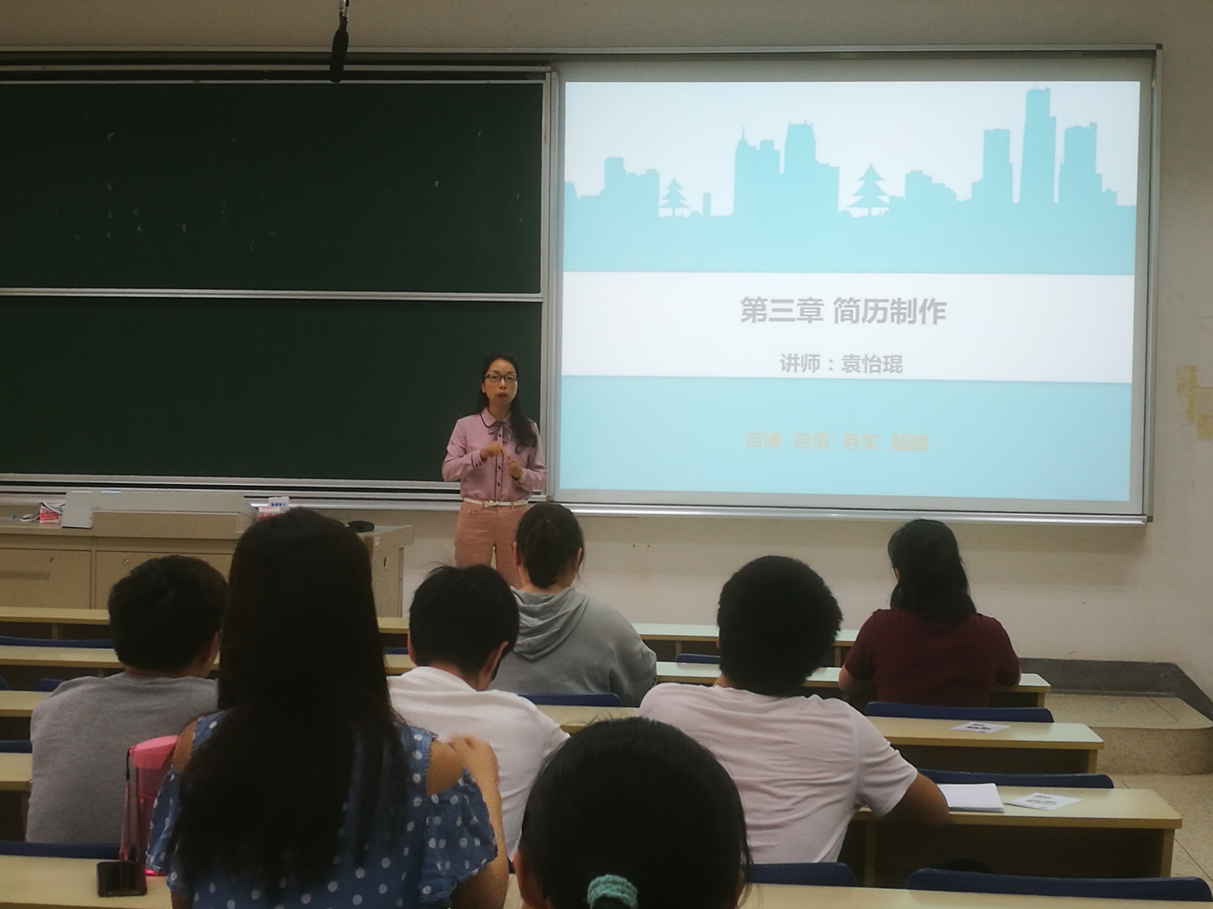 5月29日下午,星空官网2018年就业创业指导服务月系列活动—— “如何制作一份出彩的简历”专题讲座在德经楼专一103开讲。星空官网党委副书记袁怡琨老师与2015级学生分享了如何制作一份出彩的求职简历。