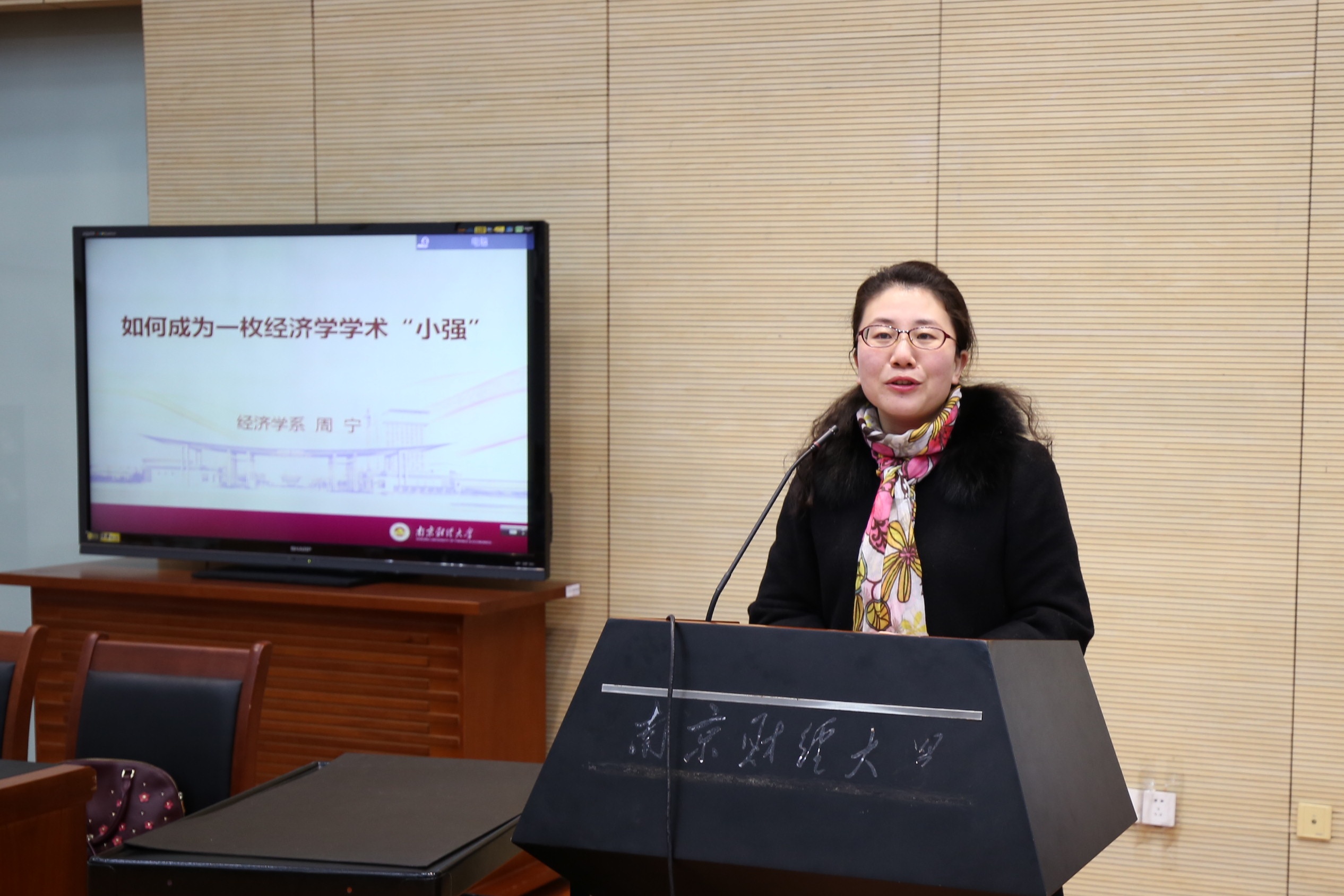 周宁主任做了题为“如何做一枚经济学学术‘小强’”的主题讲座。周主任说,之所以选这个题目,是因为做学术需要有一种“打不死的小强”的精神,不畏困难,迎接挑战。周主任就“为什么要做学术”、“做什么样的学术”、“如何做学术”三个方面阐述了学术的内涵。周主任特别强调创新能力的培养,她指出:学术上的创新是高级的创新,需要处理好理论与实践的关系,以大视野分析小问题。同时也要掌握英语、数学、计量方法、表达等基本技能,领域专一,始终如一。最后,周主任就“大学应该如何学习”提出建议,呼吁同学们走出书本,把握大学时光提高自身能力。