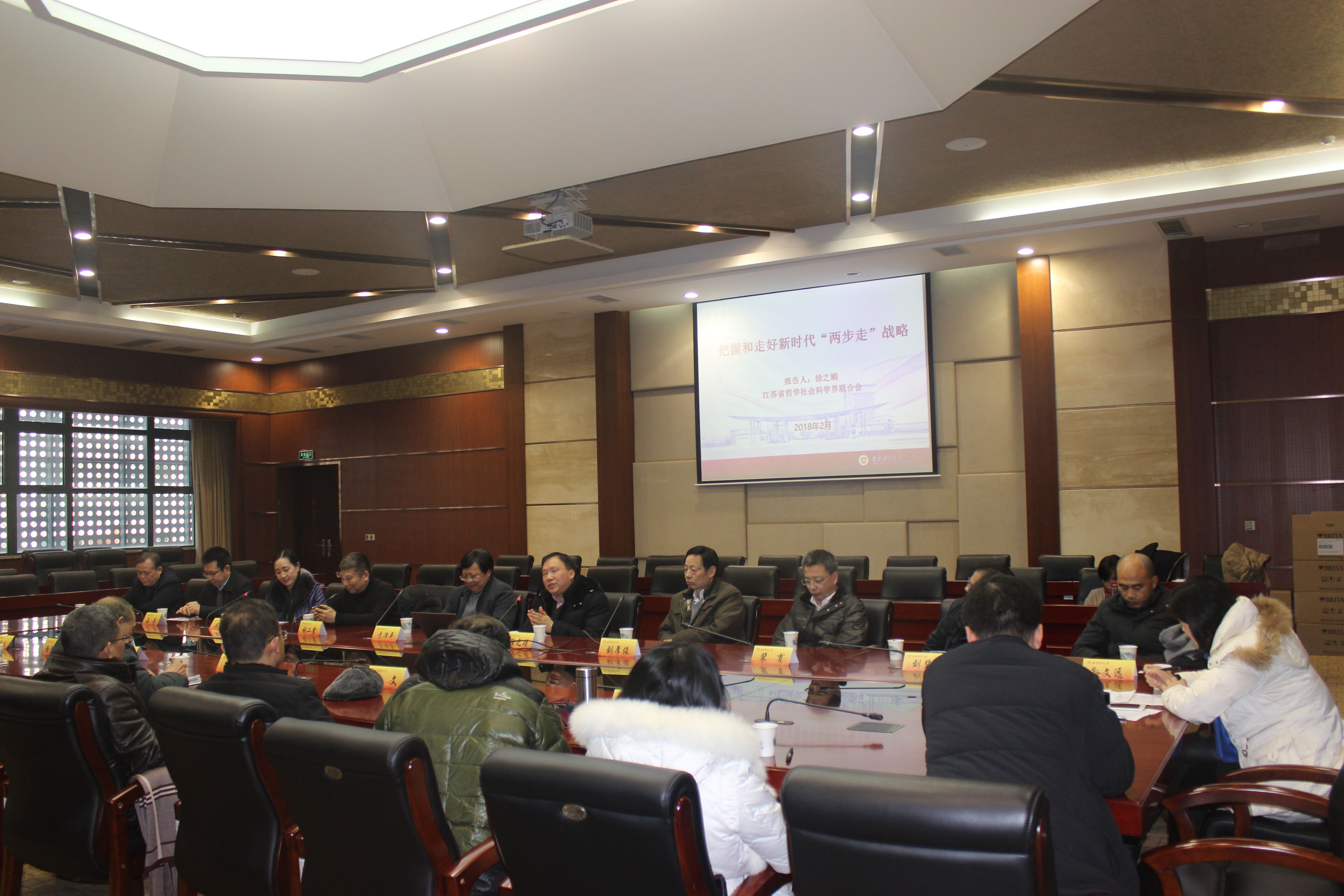 2月2日,江苏省外国经济学说研究会第八届常务理事会第二次会议在我校仙林校区工科楼二楼会议室举行。此次会议的主题是:全面贯彻党的十九大精神,把握和走好新时代“两步走”战略,为推动江苏开放型经济又快又好发展做出新贡献。来自江苏省社科联、南京大学、南京师范大学、江苏大学、星空XK等院校的30余位嘉宾参加了本次会议。研究会秘书长顾晓燕主持会议。
