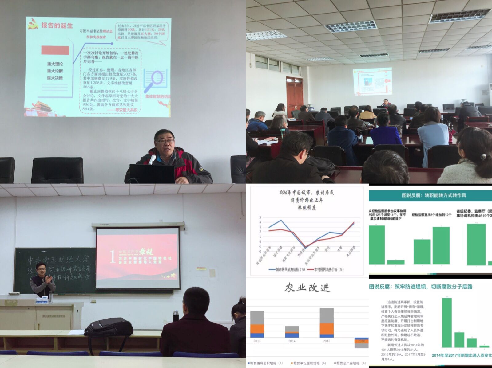 11月22日下午,星空官网在德经楼307会议室组织全体教工共同学习党的十九大报告,党委书记陈耀辉以“聚焦党的十九大,深刻理解和把握十九大报告的精髓和要义”为主题,分析总结了十九大报告在政治、思想、理论、实践、世界历史五个方面的意义和地位。他围绕十九大报告的主线,将报告分为七大板块进行逻辑结构解读,并指出十九大报告的重点最终是聚焦到“定位、定标、定向、定法”上来。与会教师表示,通过此次学习,进一步明晰十九大报告的主题和意义,同时进一步明确十九大提出的新时代新思想指引下的工作部署和任务要求。