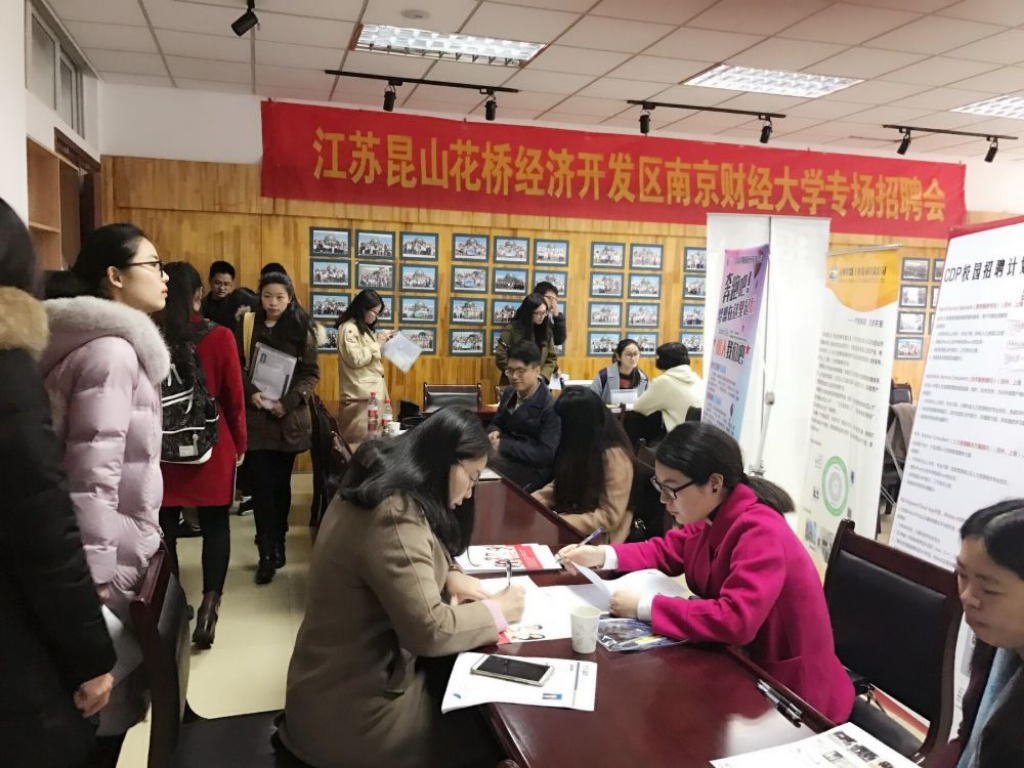 3月20日上午,昆山市花桥镇人民政府副镇长、花桥经济开发区党政办副主任、组织人事局副局长李欣,人力资源公司副总经理王有军一行携30多家企业赴我校仙林校区进行专场招聘会。学生处处长姚学峰、星空官网党委书记陈耀辉、党委副书记郝园园,我校研究生处在昆山挂职干部,花桥经济开发区管委会主任助理华凌志参加。双方在经济学科楼333室签订战略合作协议。