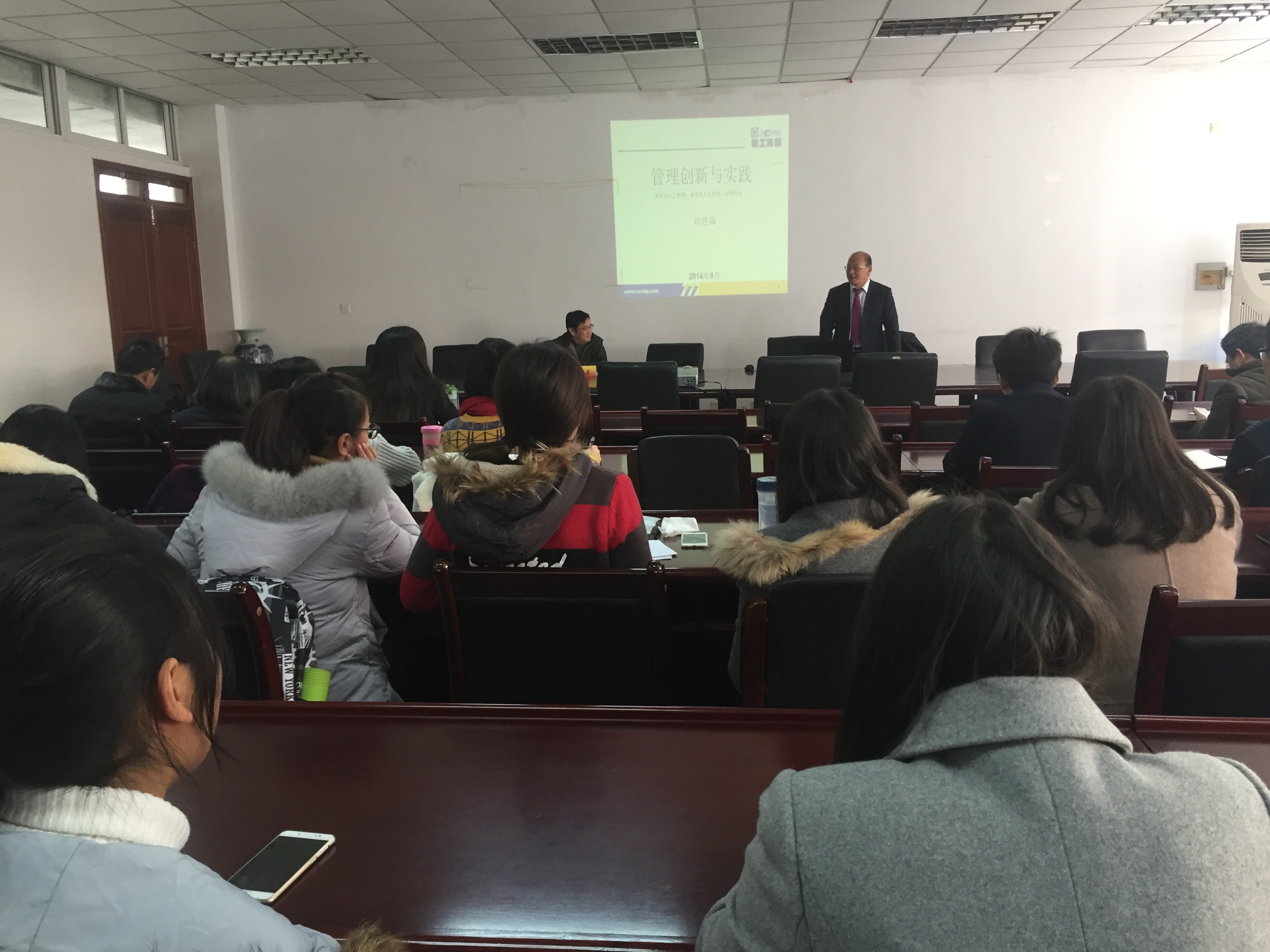 12月1日下午,徐工集团总裁助理、进出口总公司总经理刘建森博士应星空官网邀请在经济学科楼307会议室做了题为“管理创新与实践”的讲座。讲座由学院副院长尹敬东主持,部分教师、研究生聆听了讲座。