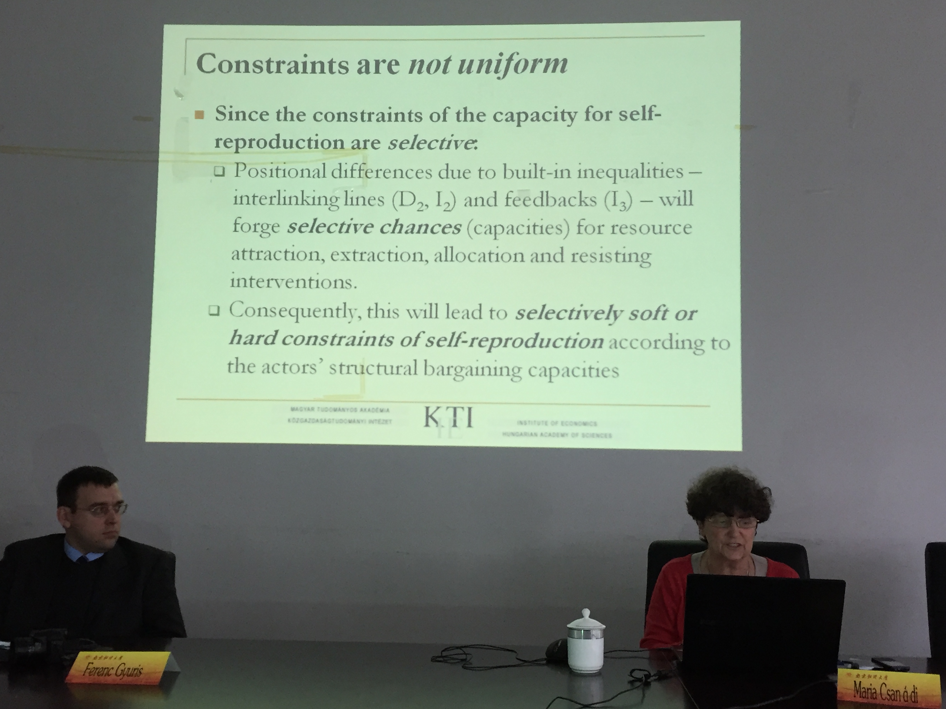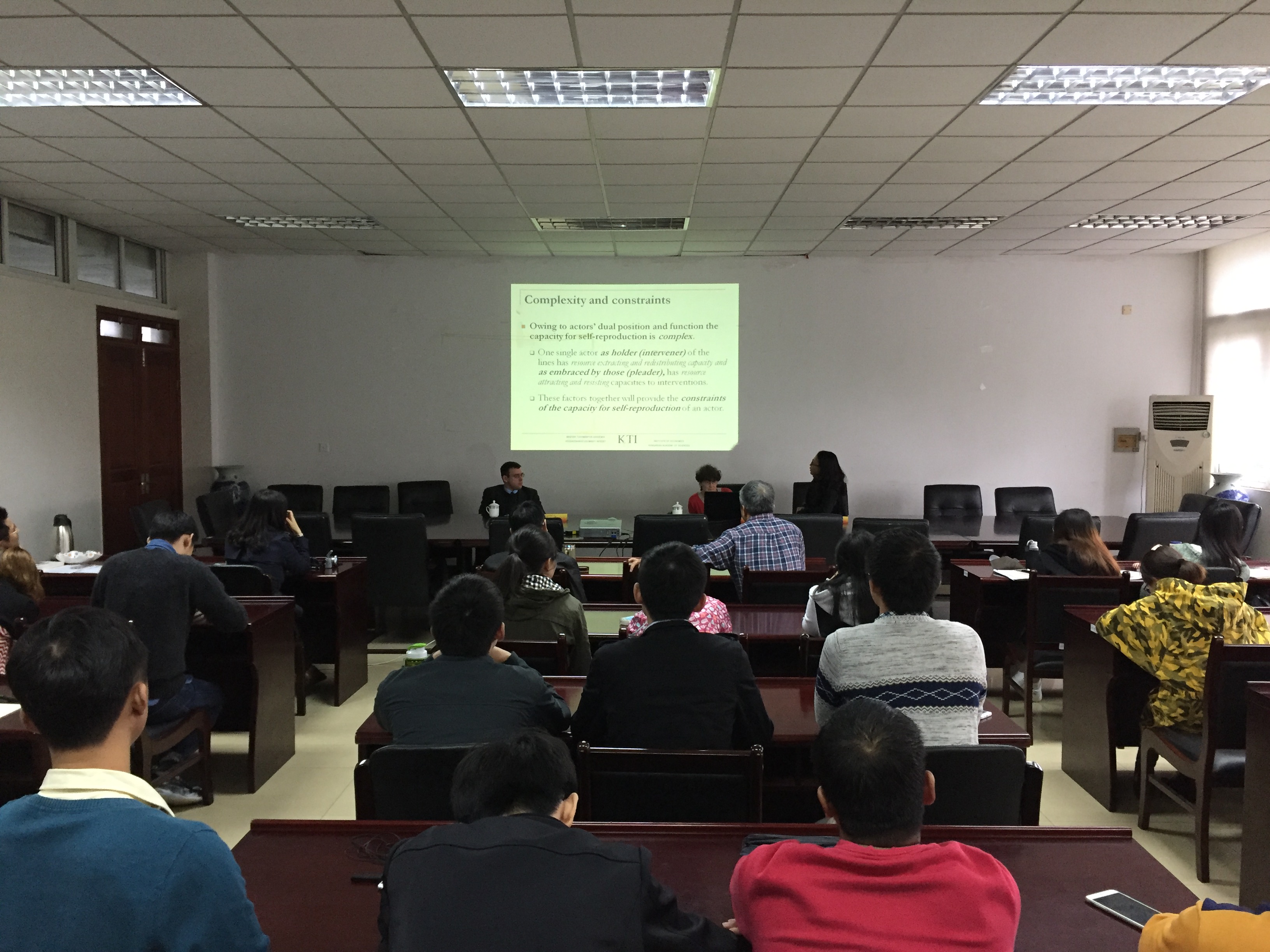 10月26日周三下午,应星空官网邀请,匈牙利科学院经济研究所研究顾问Maria Csanádi和罗兰大学(旧名布达佩斯大学)助理教授Ferenc Gyuris在我校仙林校区经济学科楼307会议室作了题为《Systemic background of investment overheating(投资过热的系统性背景)》》的讲座,讲座由经济系主任周绍东主持,黄姗姗博士现场翻译,学院教师、研究生聆听了讲座。
