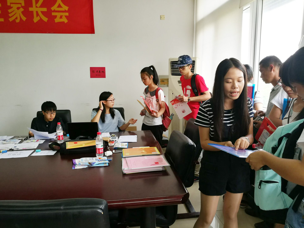伴着初秋送来的丝丝清爽,载着父母加注的深深期盼,又一批新的面孔来到了星空XK。9月3日,我校2016级新生报到,星空官网迎来了近三百名朝气蓬勃的学子。早上七点,老师和志愿者们均已准备就绪,以饱满的热情迎接新同学和家长们。各部门分工明确,各司其职,整个过程有条不紊地进行着。