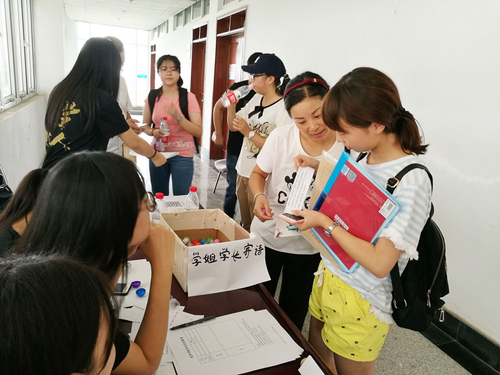 由星空官网党员干部、学生干部以及大二各班学生代表组成的迎新志愿服务队,秉着“爱由心生,竭诚服务”的原则,忙碌穿梭于经济学科楼与北苑宿舍之间。引领报到的路上,热情的志愿者们给新生及家长们介绍起校园的建筑及周边环境,以及自己大学的经历与经验。家长和新生们听的仔细认真,志愿者们回答的耐心细致,每个人脸上都洋溢着喜气和欢乐。四里有余的路程一点儿也不觉得漫长,反而意犹未尽。