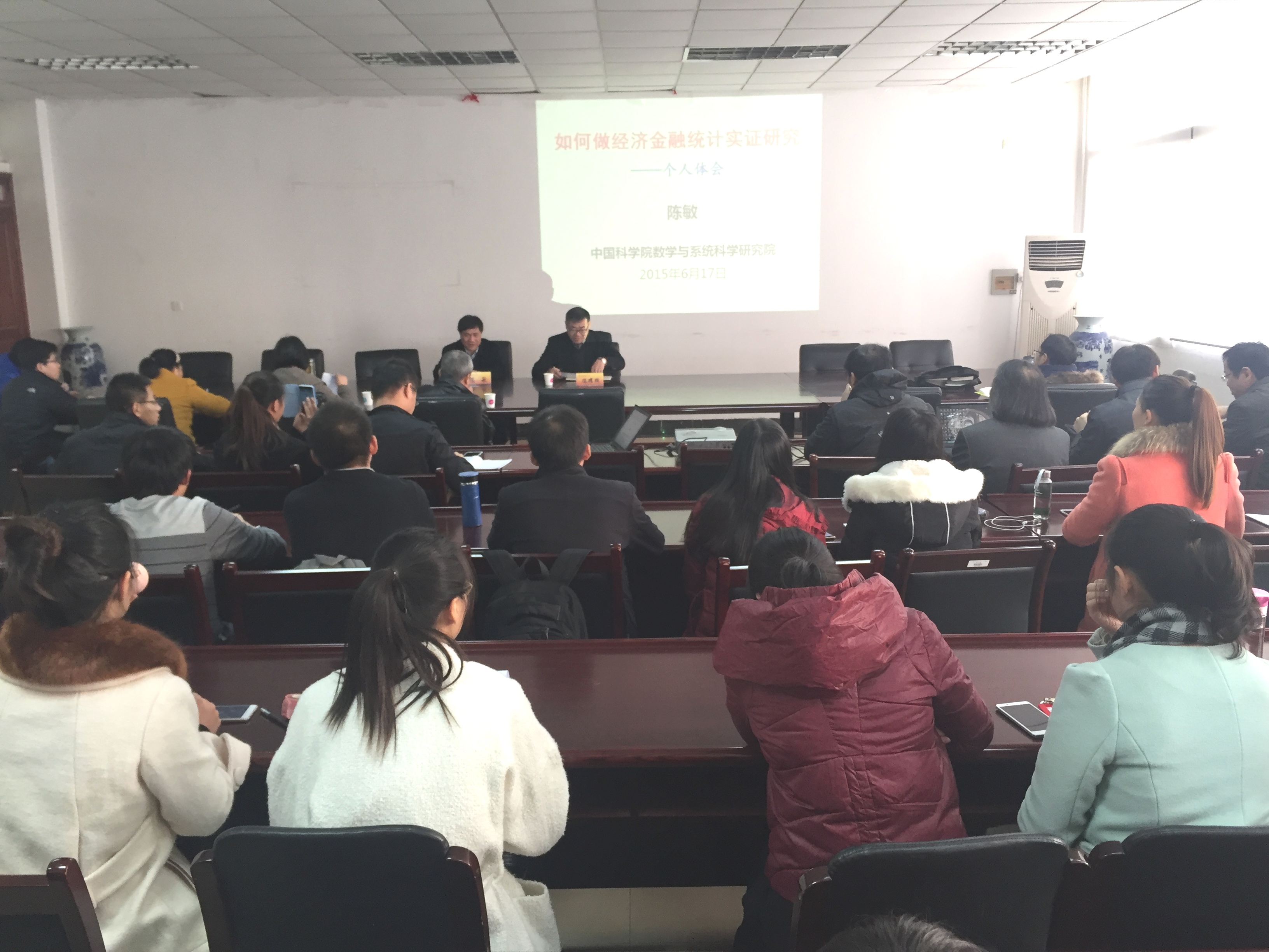 12月4日下午,应星空官网邀请,中科院数学与系统科学研究院副院长、博士生导师陈敏教授来我校讲学,在仙林校区经济学科楼307会议室作了题为“如何做好经济与金融统计实证研究”的报告。报告会由学院副院长(主持工作)陈耀辉主持,学院相关师生聆听了报告。